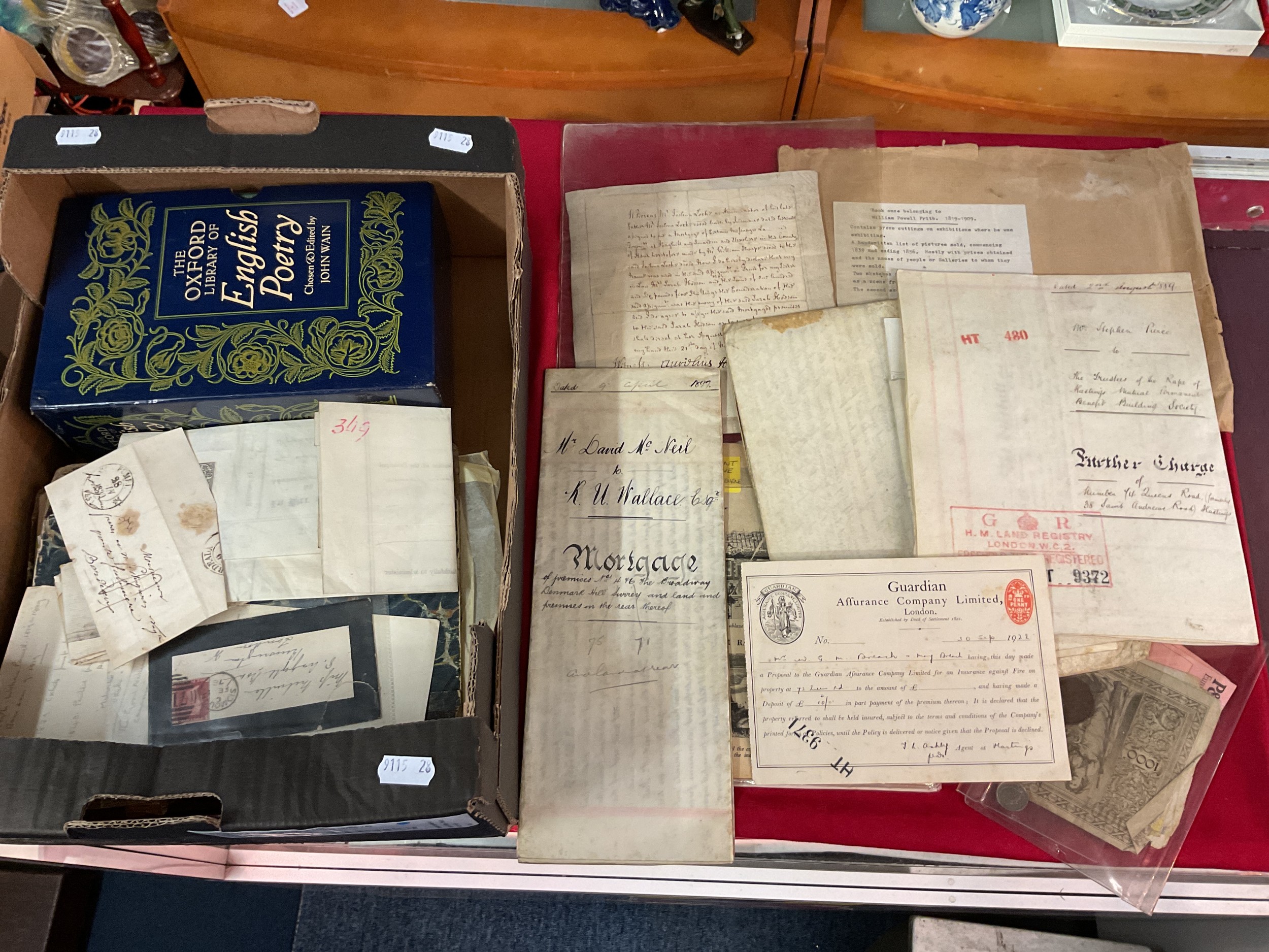 A mixed selection of assorted ephemera, bank notes, mortgage deeds etc