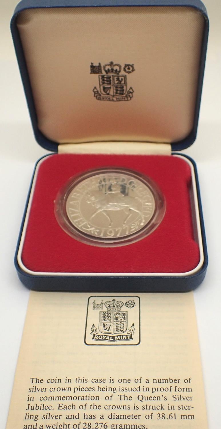 1977 Royal Mint silver proof crown of Elizabeth II, boxed with COA. P&P Group 1 (£14+VAT for the first lot and £1+VAT for subsequent lots)