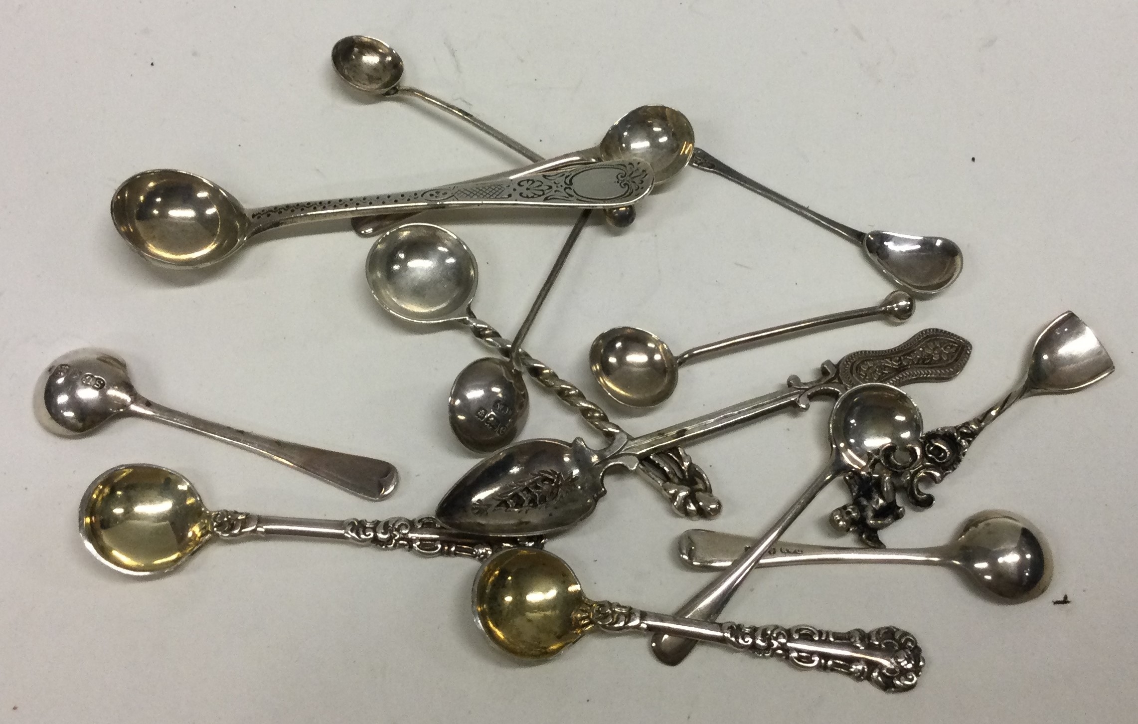 A collection of various silver salt spoons. Approx. 53 grams. Est. £30 - £50.