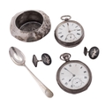 A small mixed lot of silver, to include two pocket watches, a teaspoon, a nozzle and a pair of Siamese cuff links; 1.3ozt weighable silver (6)