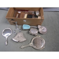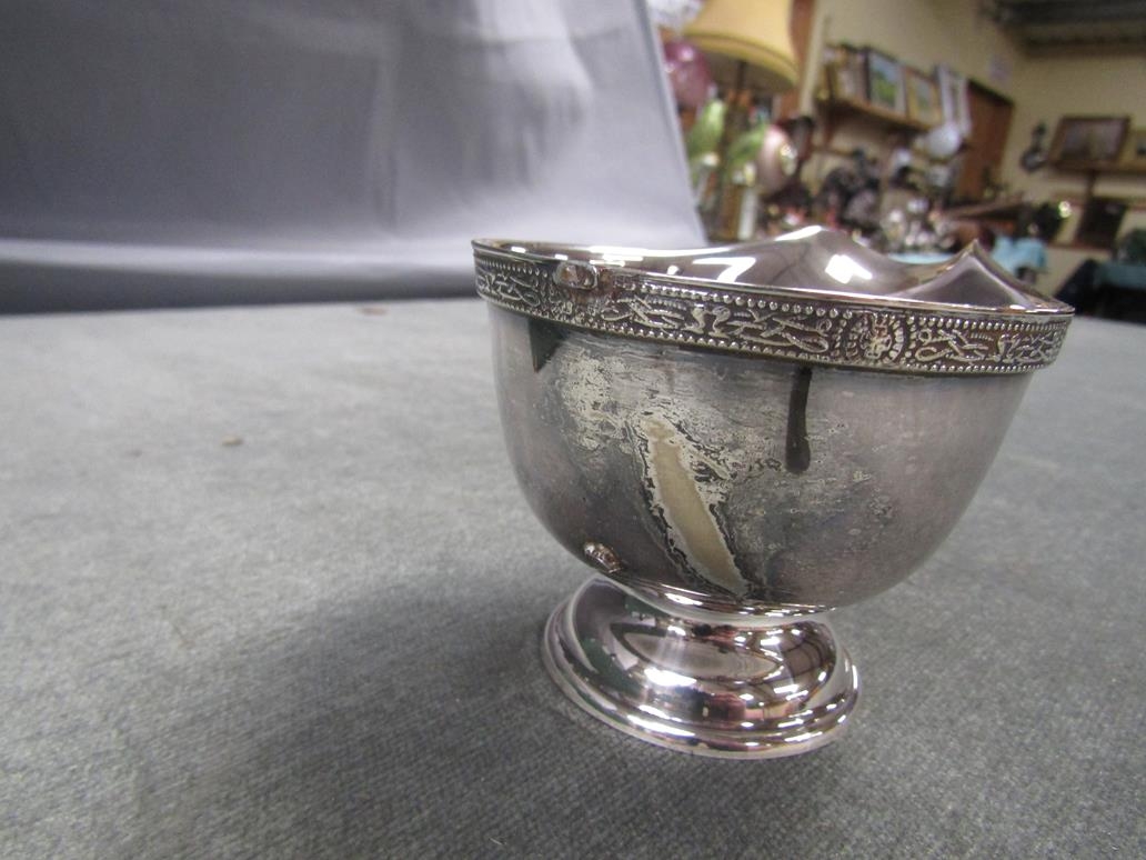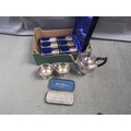 THREE PIECE SILVER PLATE TEA SERVICE, ROLLS RAZOR, SET OF SIX PLATED WINE GOBLETS