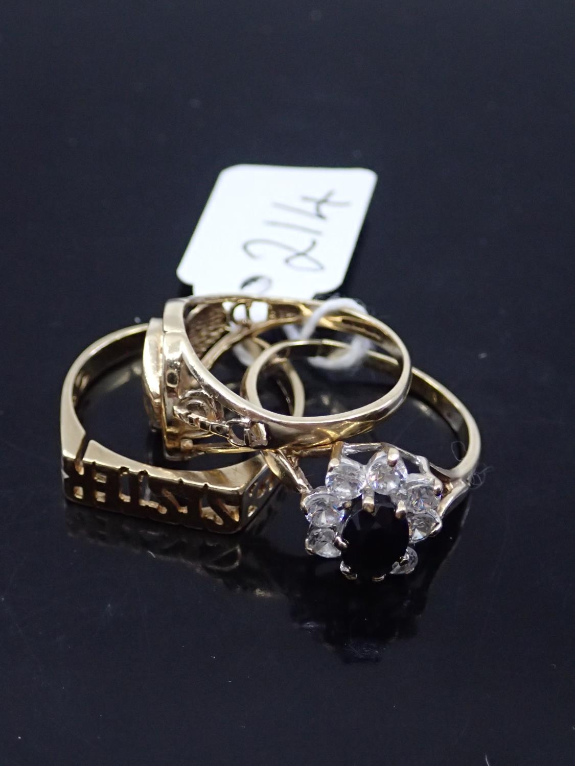 Three gold rings, total weight 7.5 grams, finger sizes P to Q