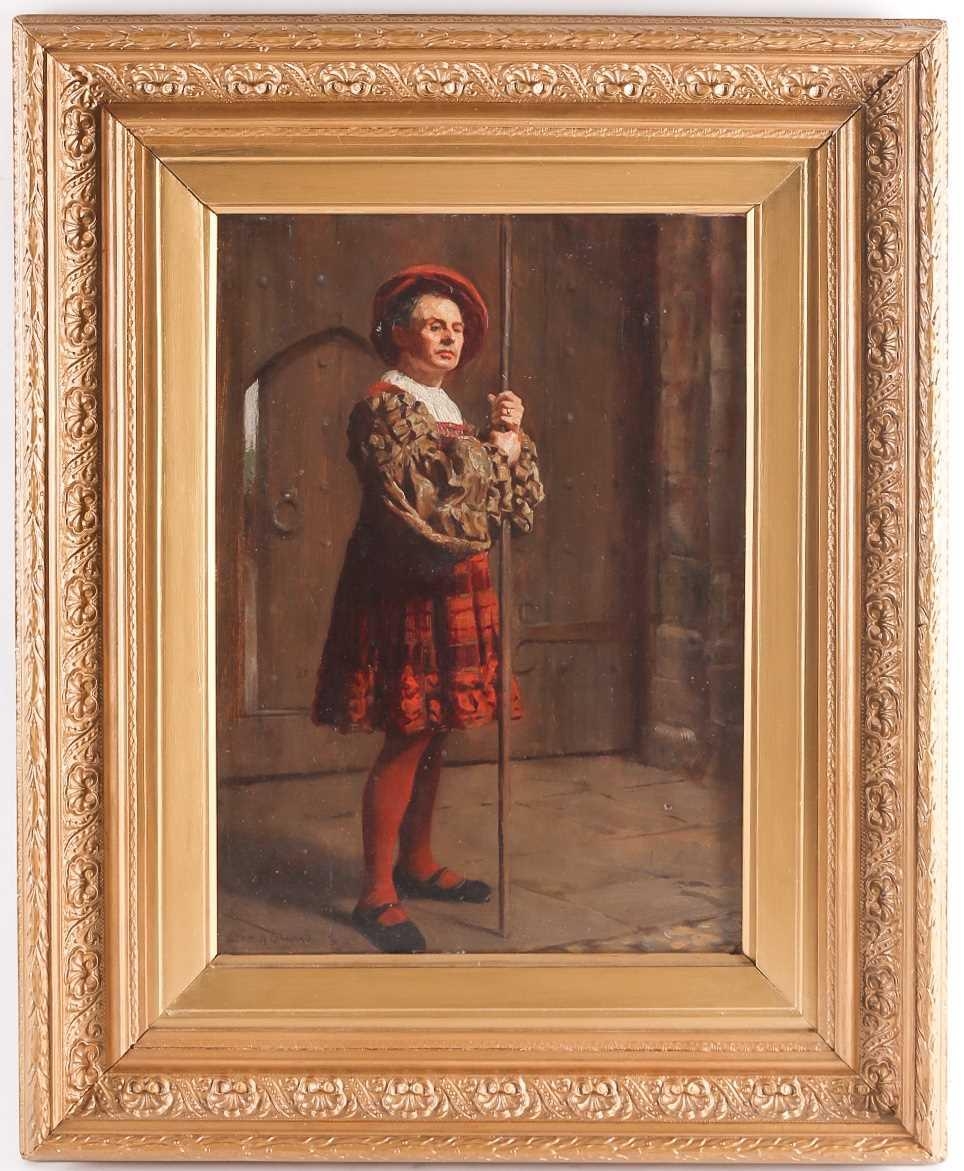 Albert Henry Collings (1868-1947), 'A Man in Red', oil on canvas, signed and dated 1915, 39 cm x 28.5 cm in a gilt frame.