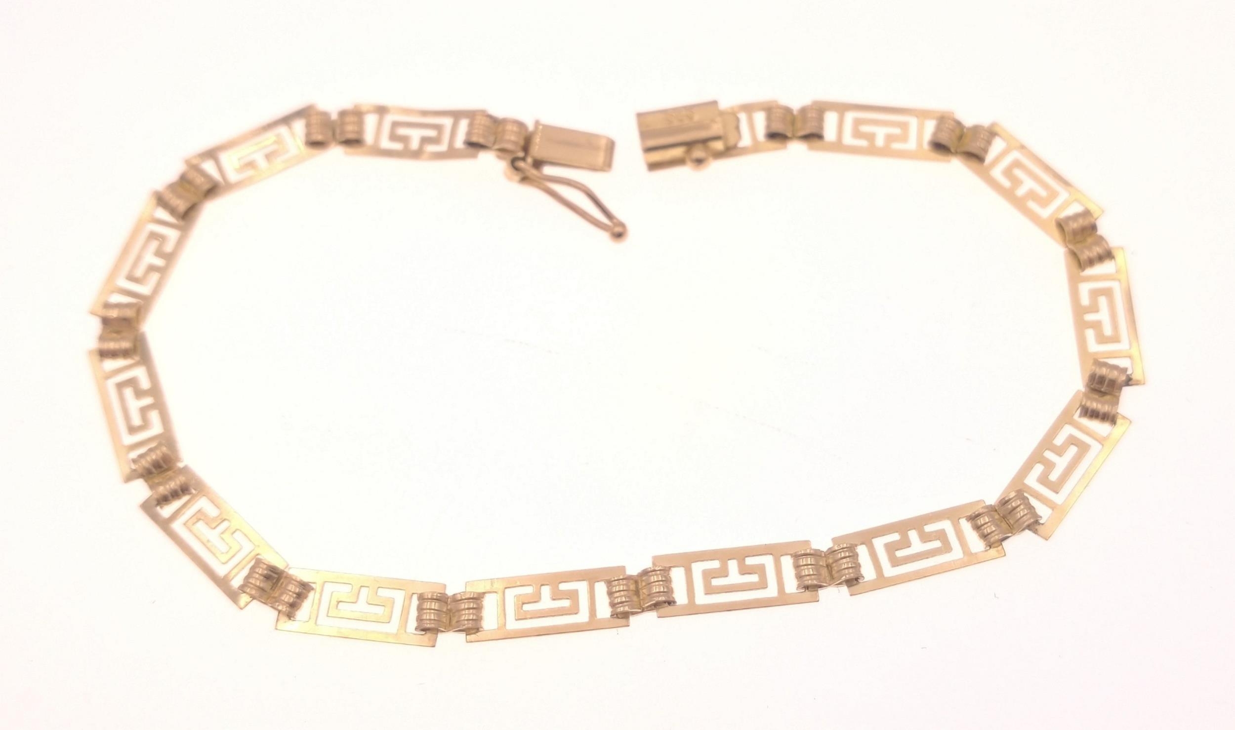 An attractive 19cm long Aztec key bracelet stamped 585, gross weight 4.0g