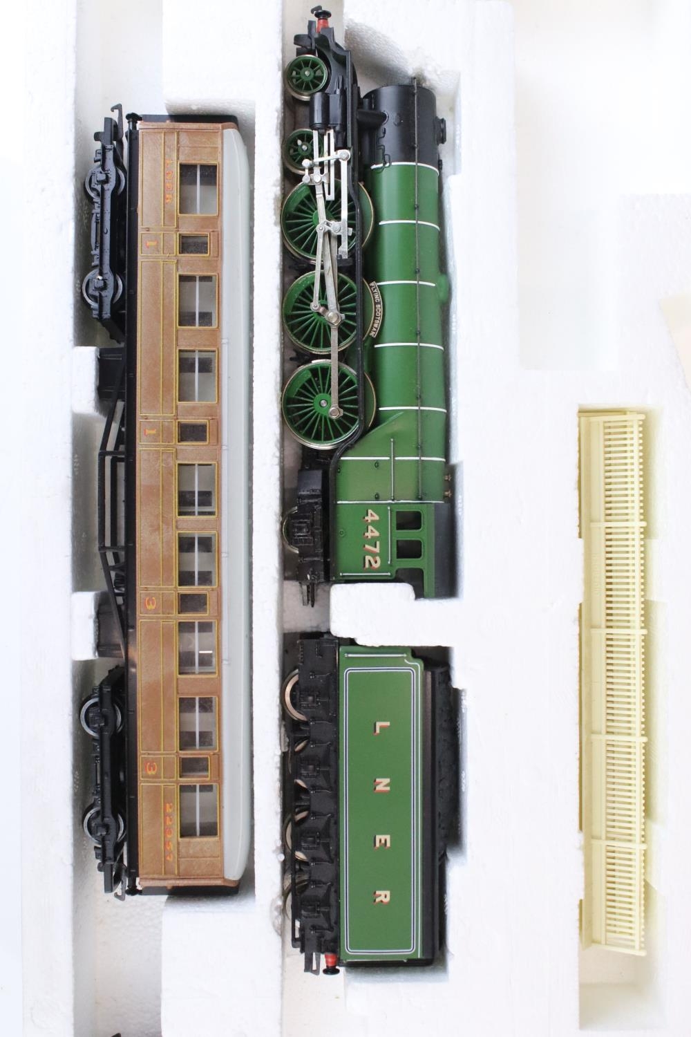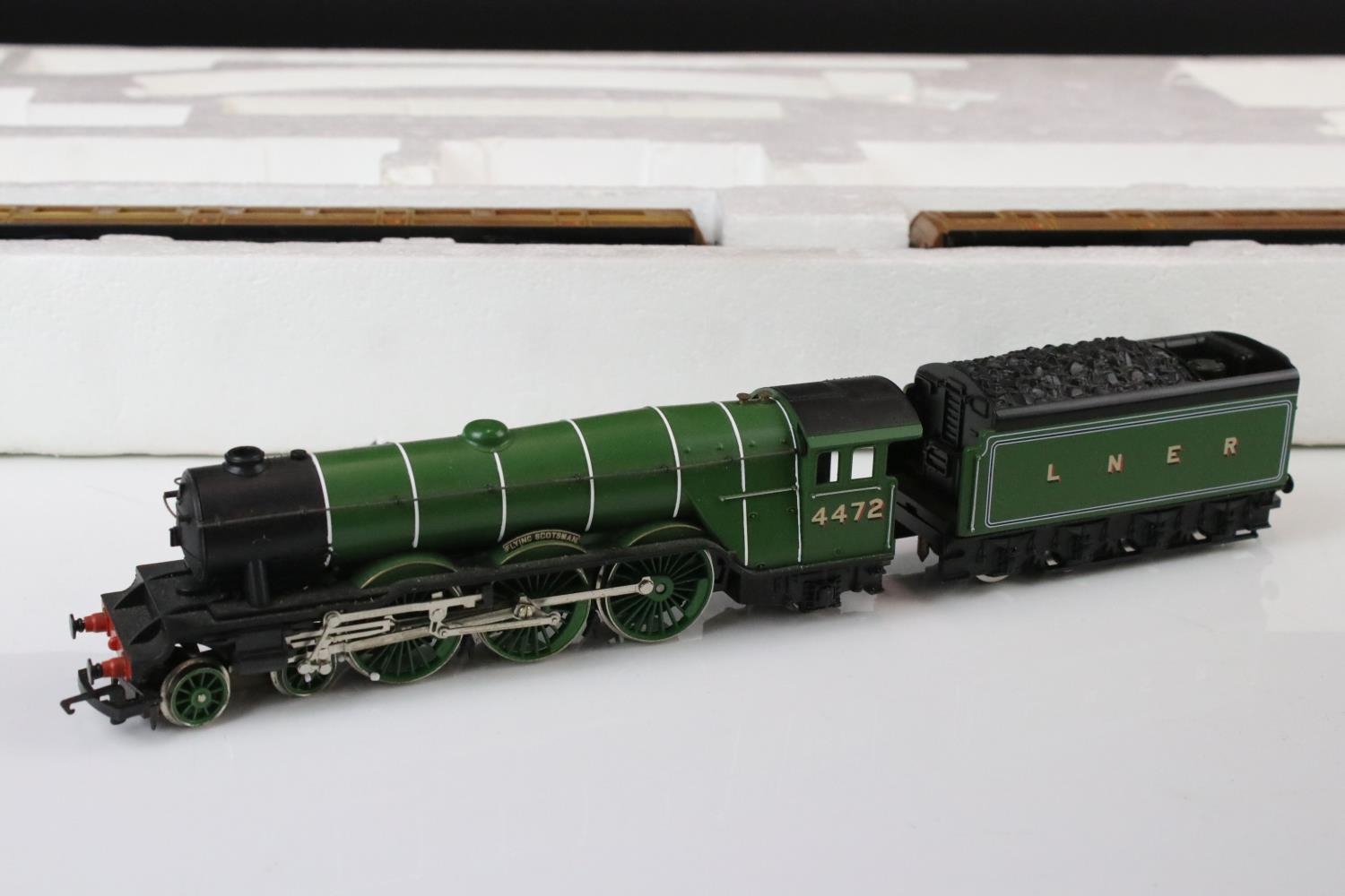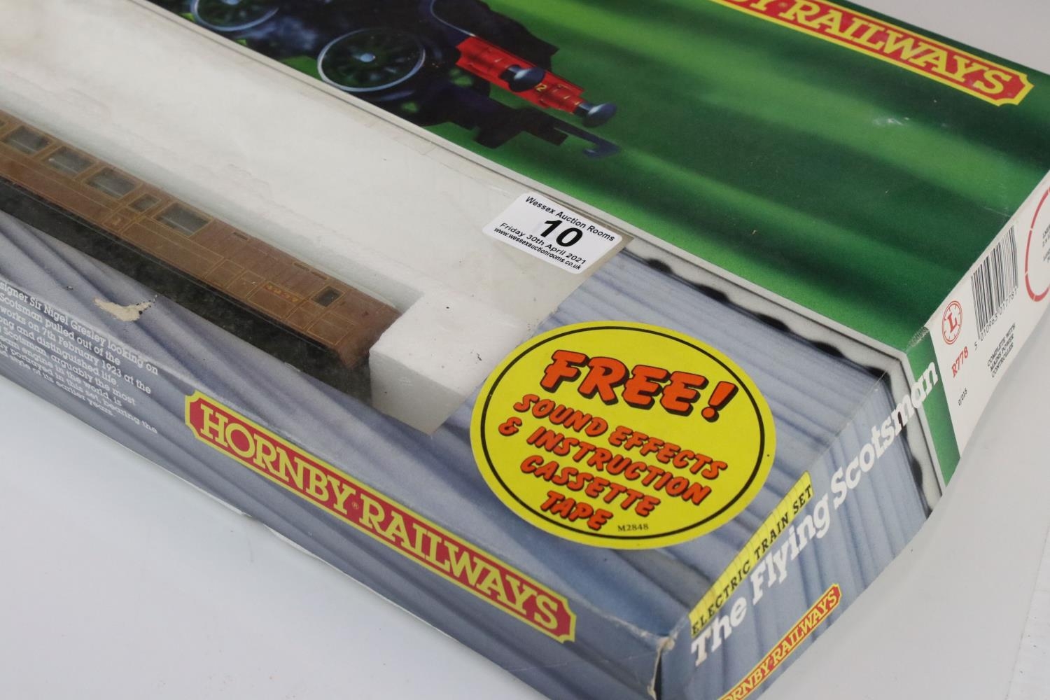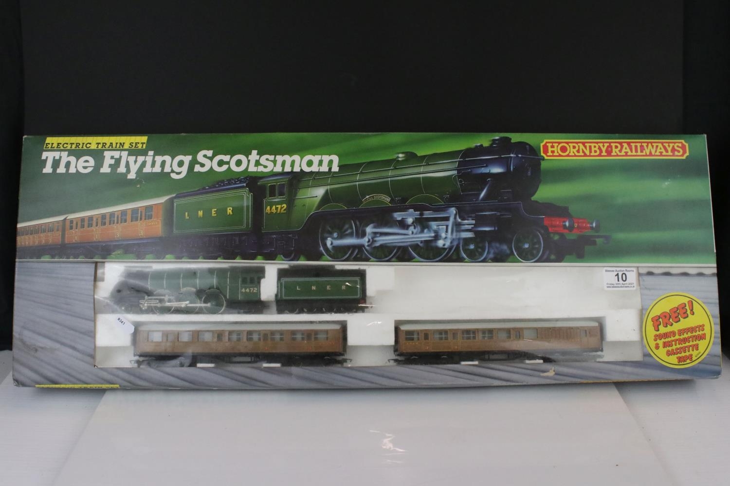 Boxed Hornby OO gauge R778 The Flying Scotsman train set with locomotive, 2 x coaches and cassette tape, no track or other accessories