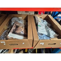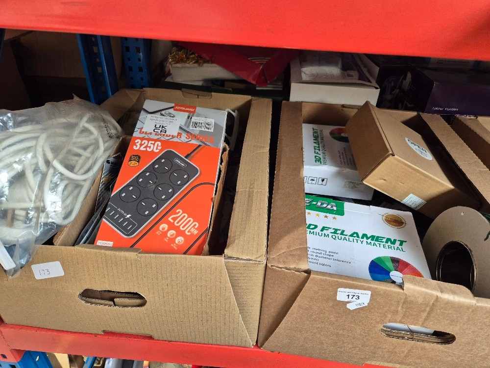 A box of extension leads (new and unused), together with a box of lithium cell batteries and filament wire