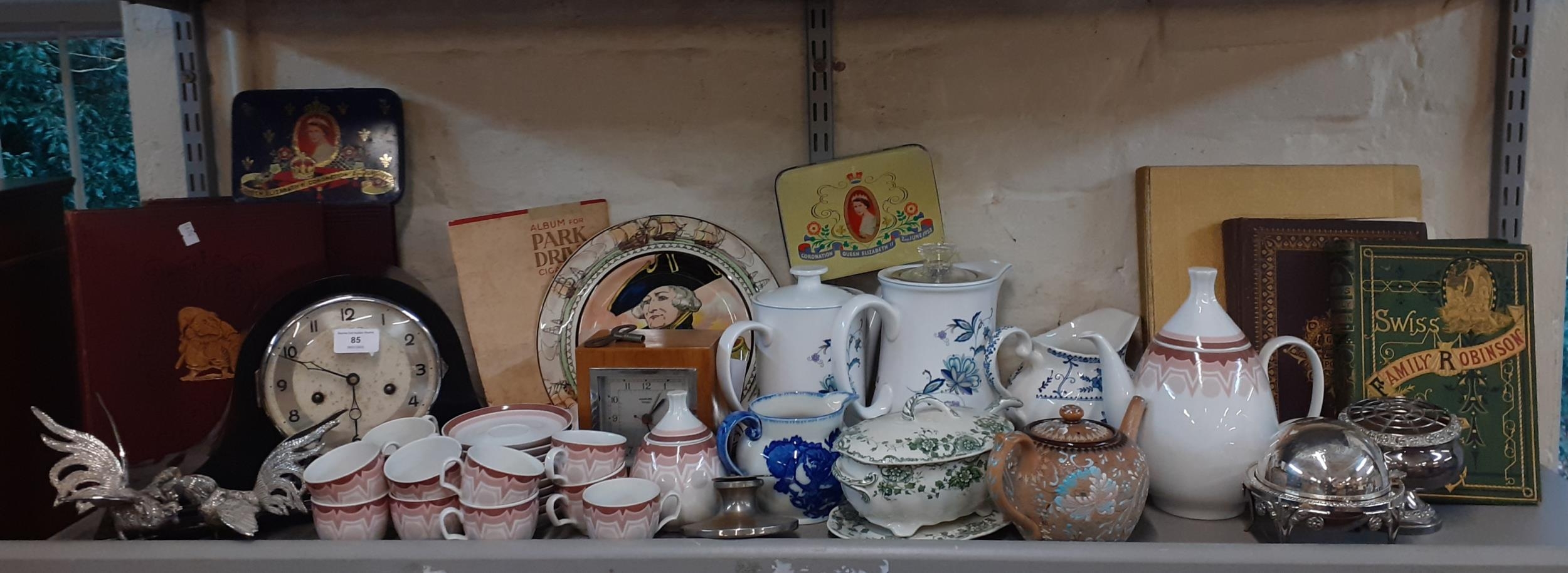 A mixed lot comprising early to mid 20th century mantel clocks and mixed chinaLocation: LWF