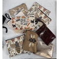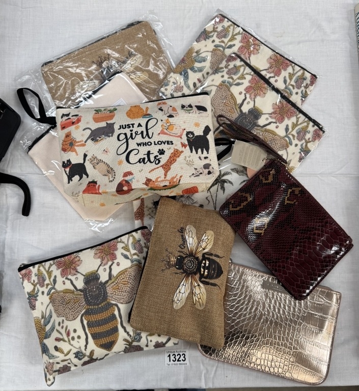 A quantity of new ladies toiletry bags & a leather faux snake skin clutch