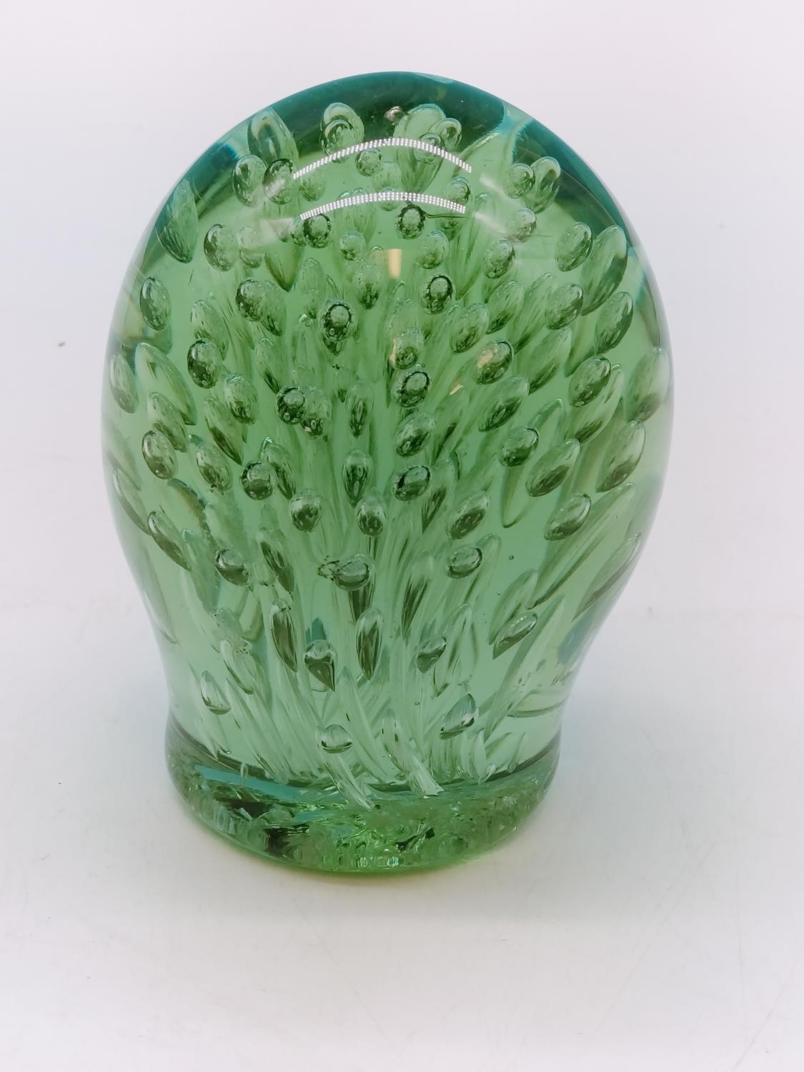 Victorian Green Glass Dump Paperweight. 15cm Tall.