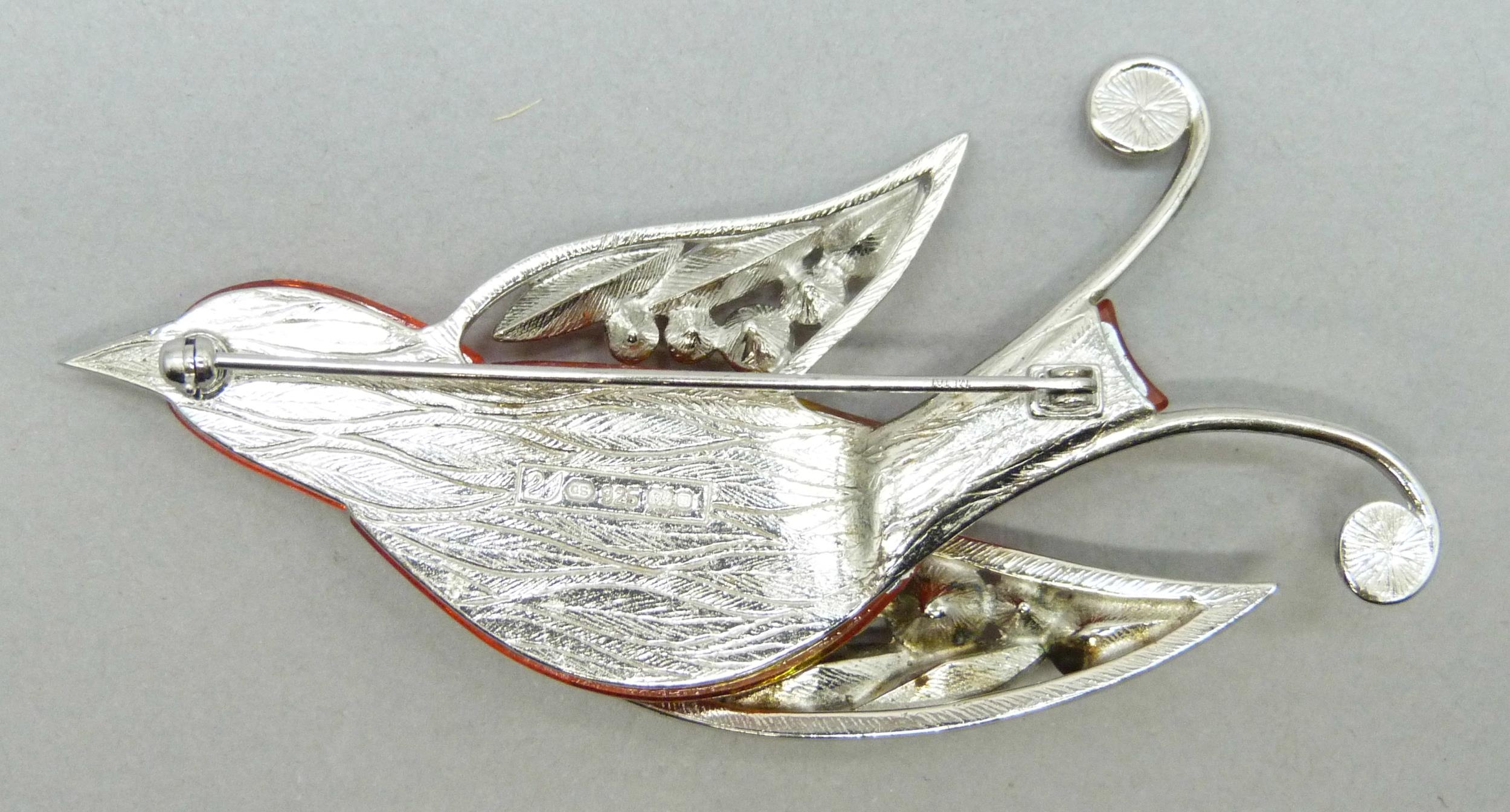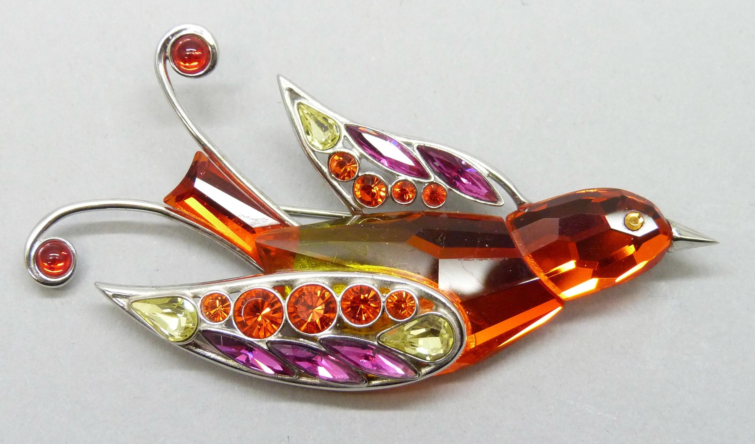 A silver Swarovski crystal brooch in the form of a bird, 7.8cm, 24g