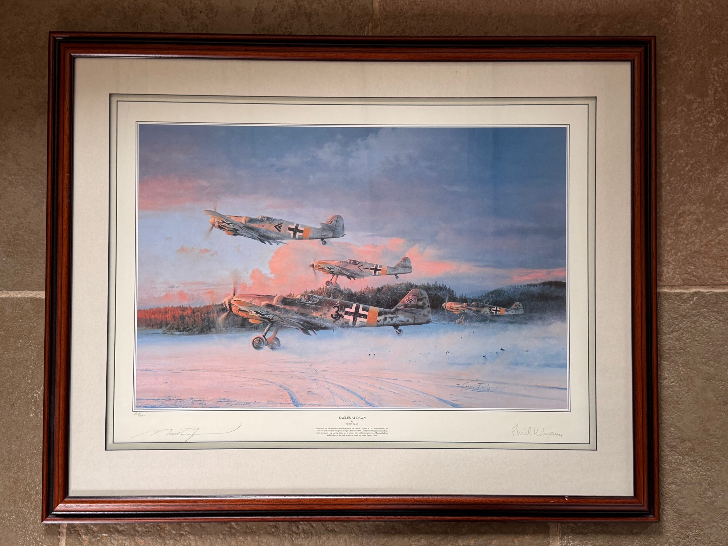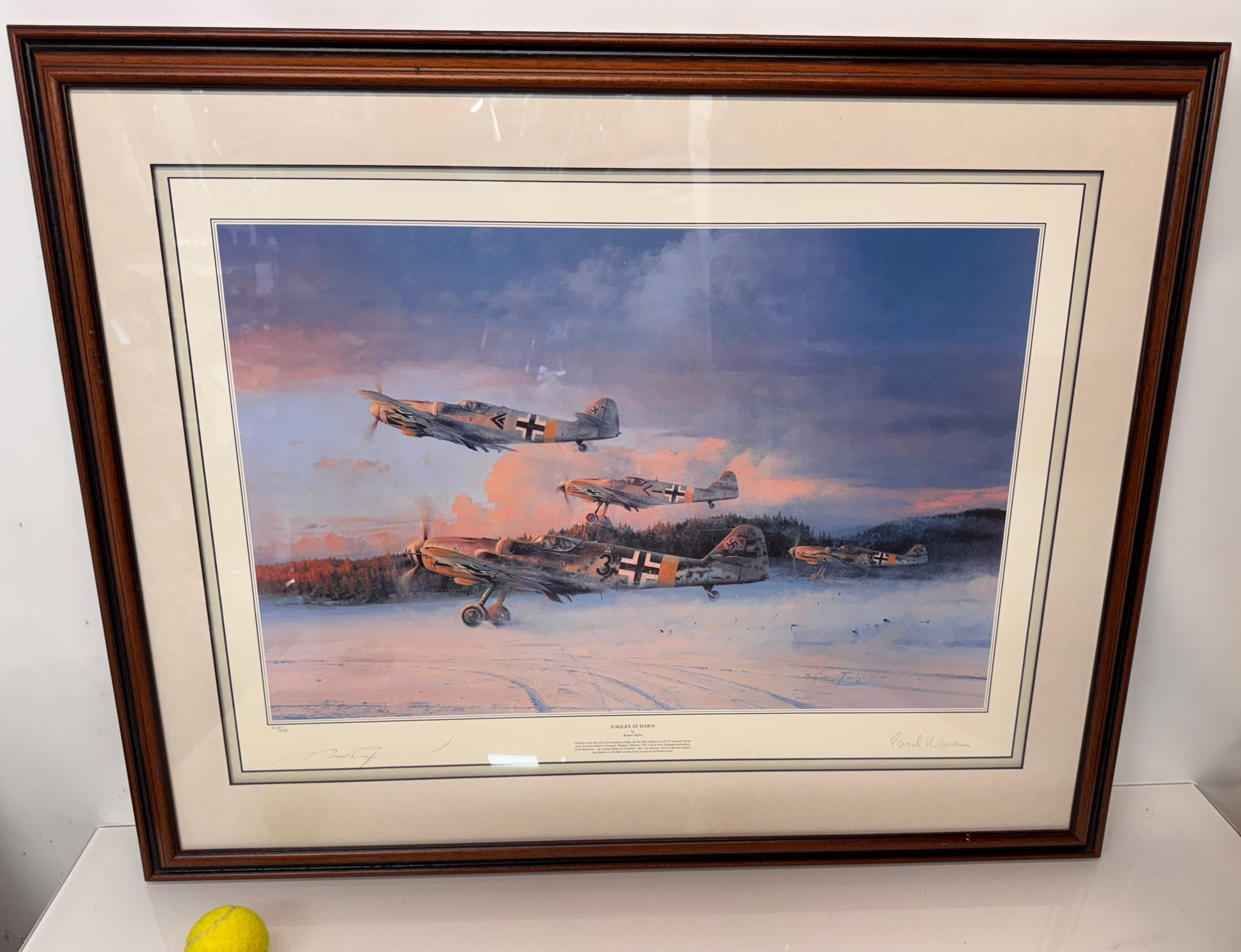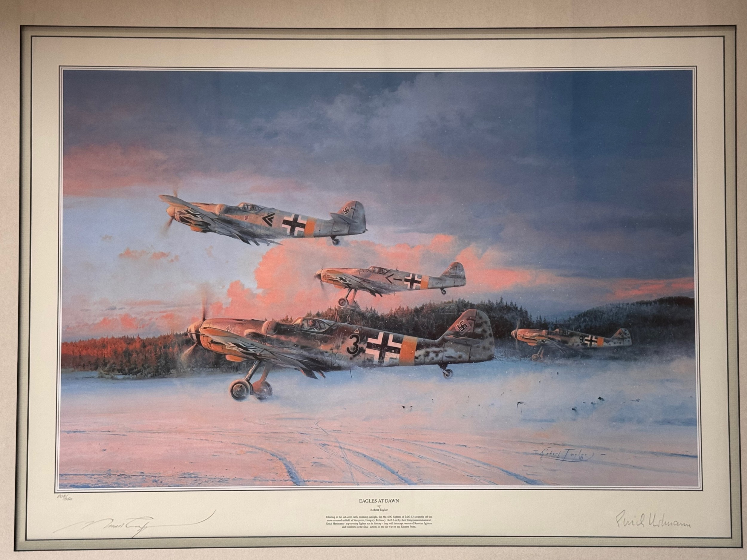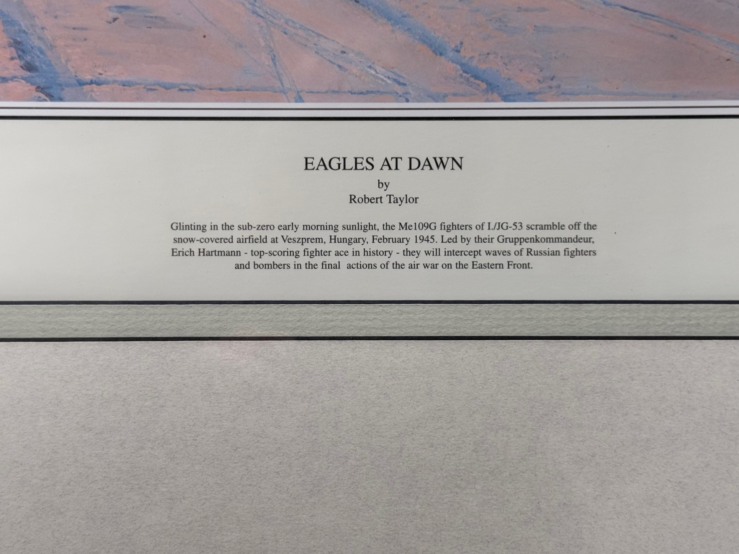 Militaria, WWII German Luftwaffe, aircraft interest, a framed signed limited edition print Eagles at Dawn by Robert Taylor, 95 cm x 76 cm.