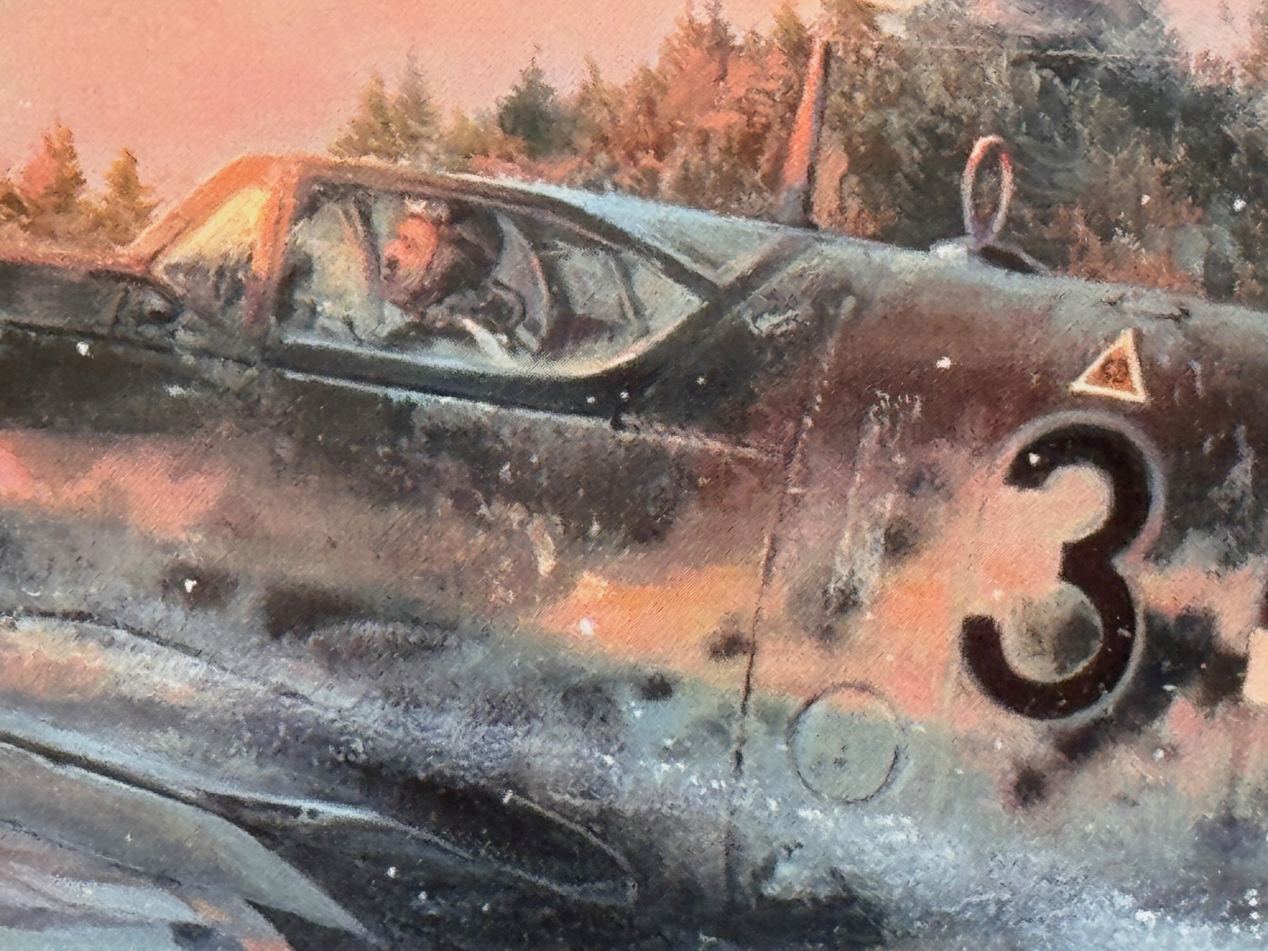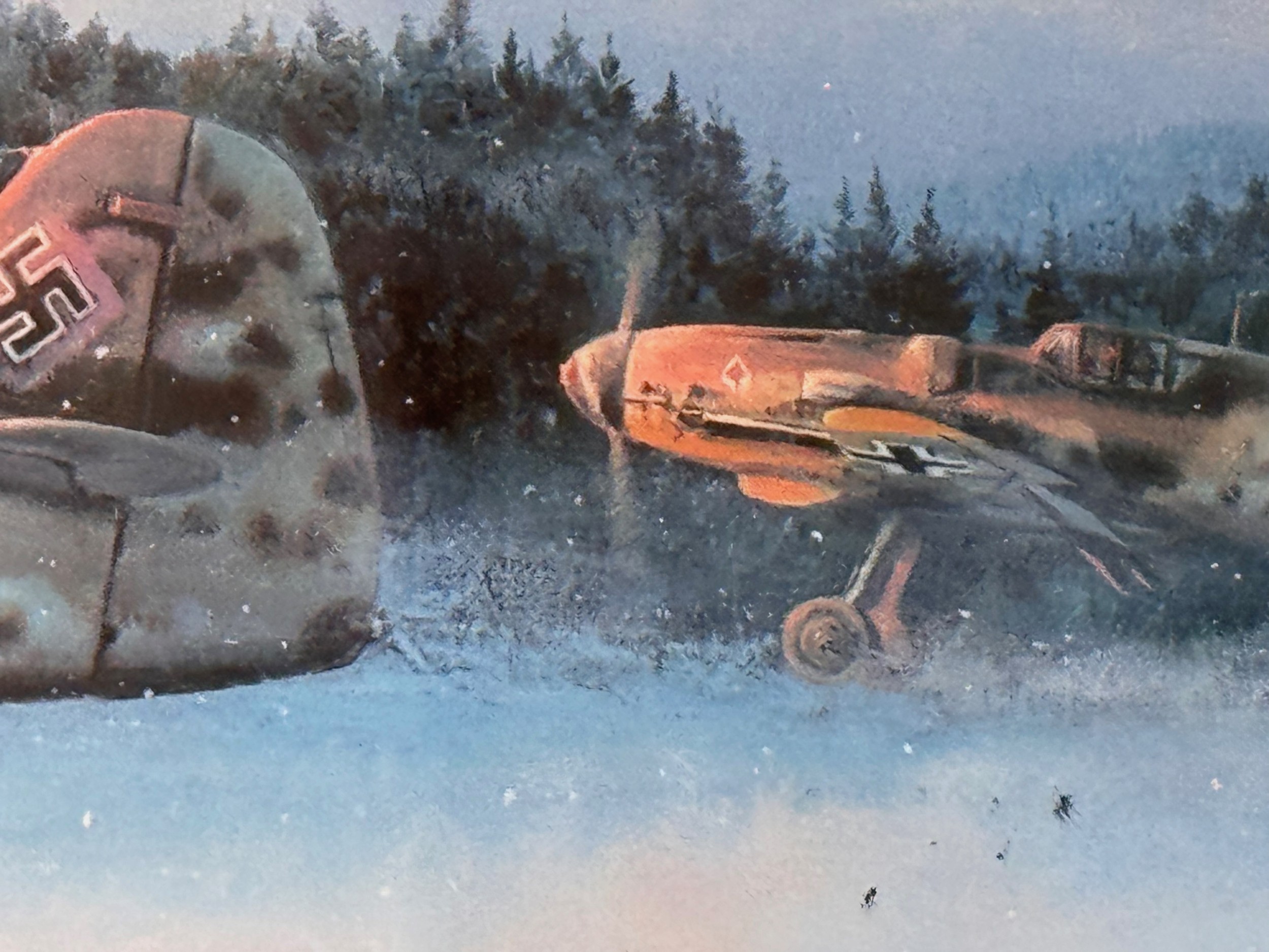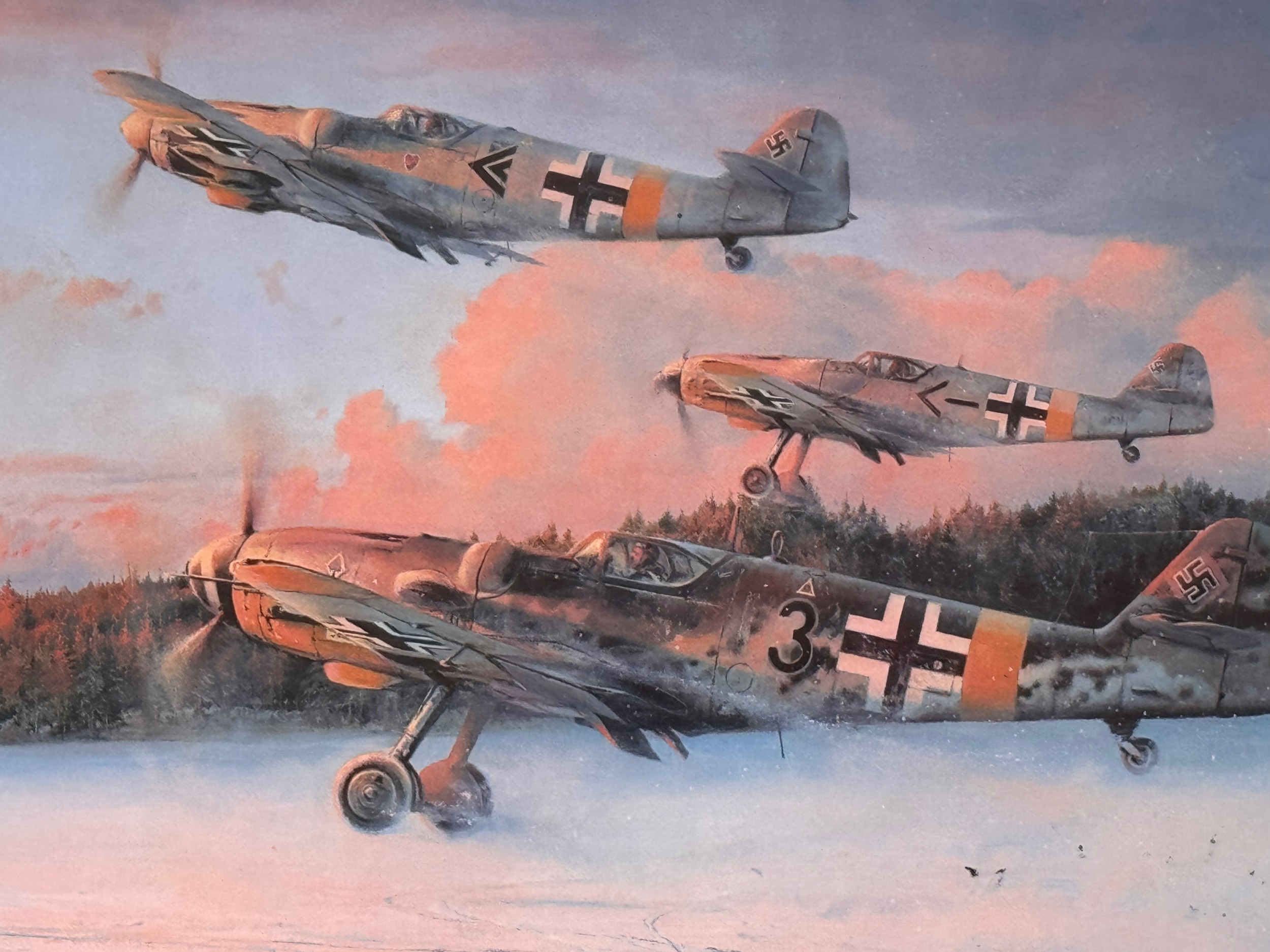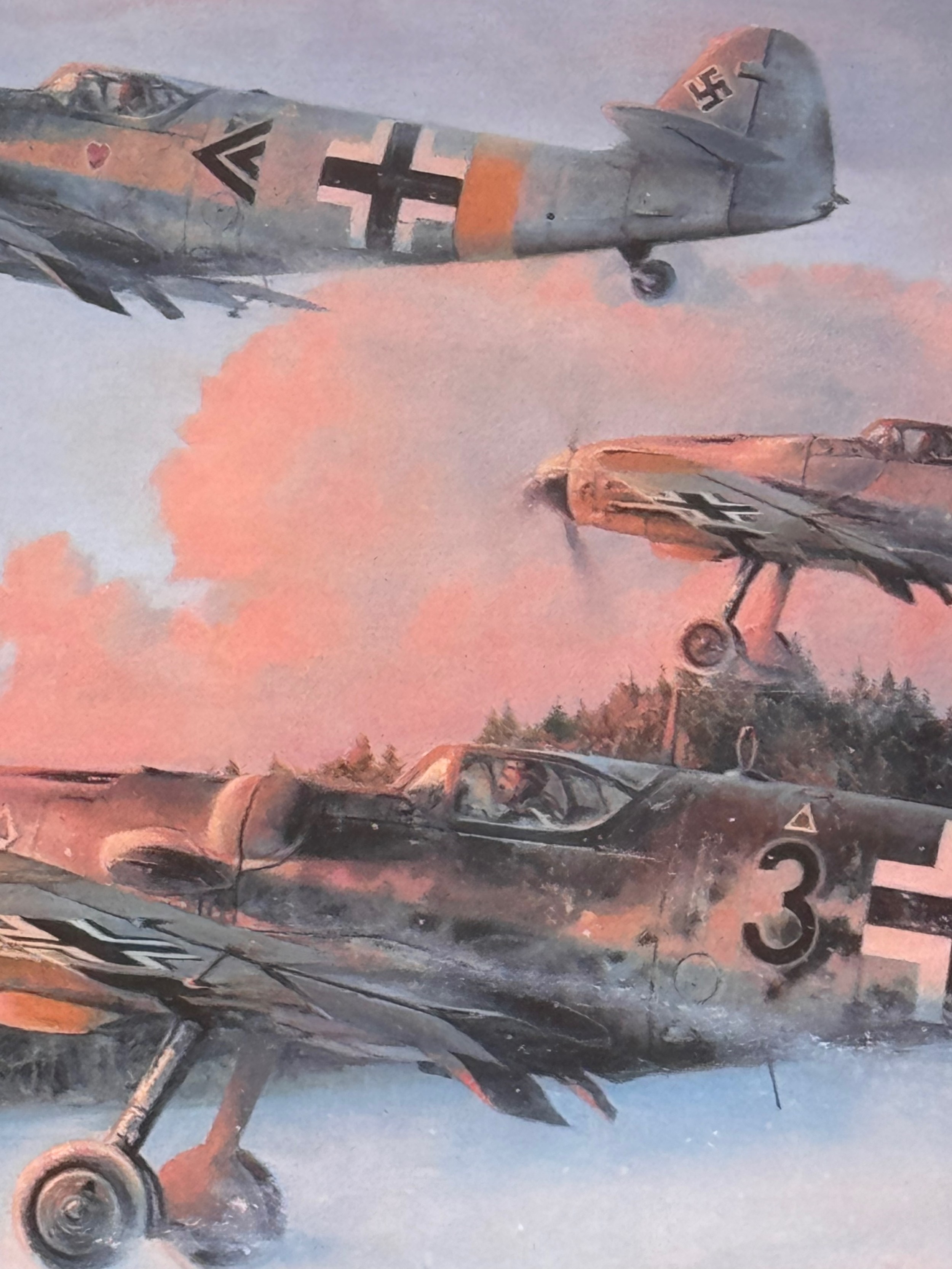 Militaria, WWII German Luftwaffe, aircraft interest, a framed signed limited edition print Eagles at Dawn by Robert Taylor, 95 cm x 76 cm.