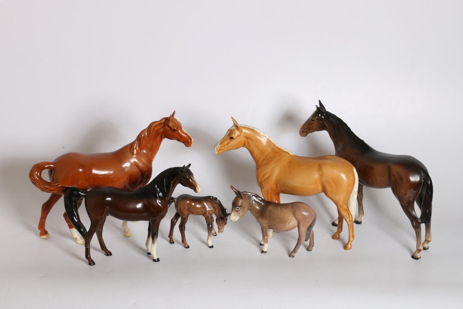 Collection of Beswick model horses, and a model of a donkey. (a/f)