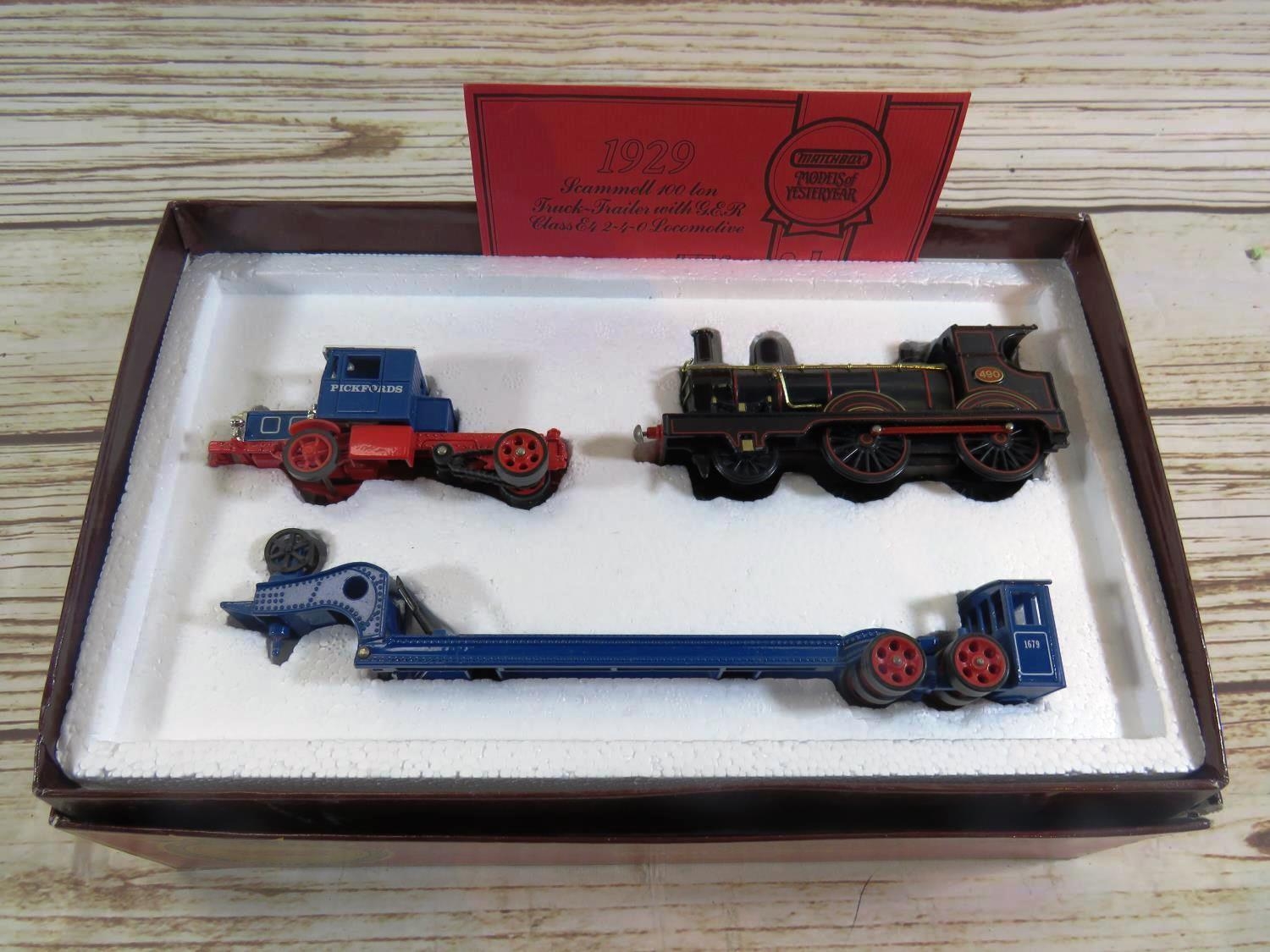 MATCHBOX DIE CAST - LARGE SCALE - 100 TON TRUCK AND TRAILER - WITH GER CLASS LOCOMOTIVE BY PICKFORDS