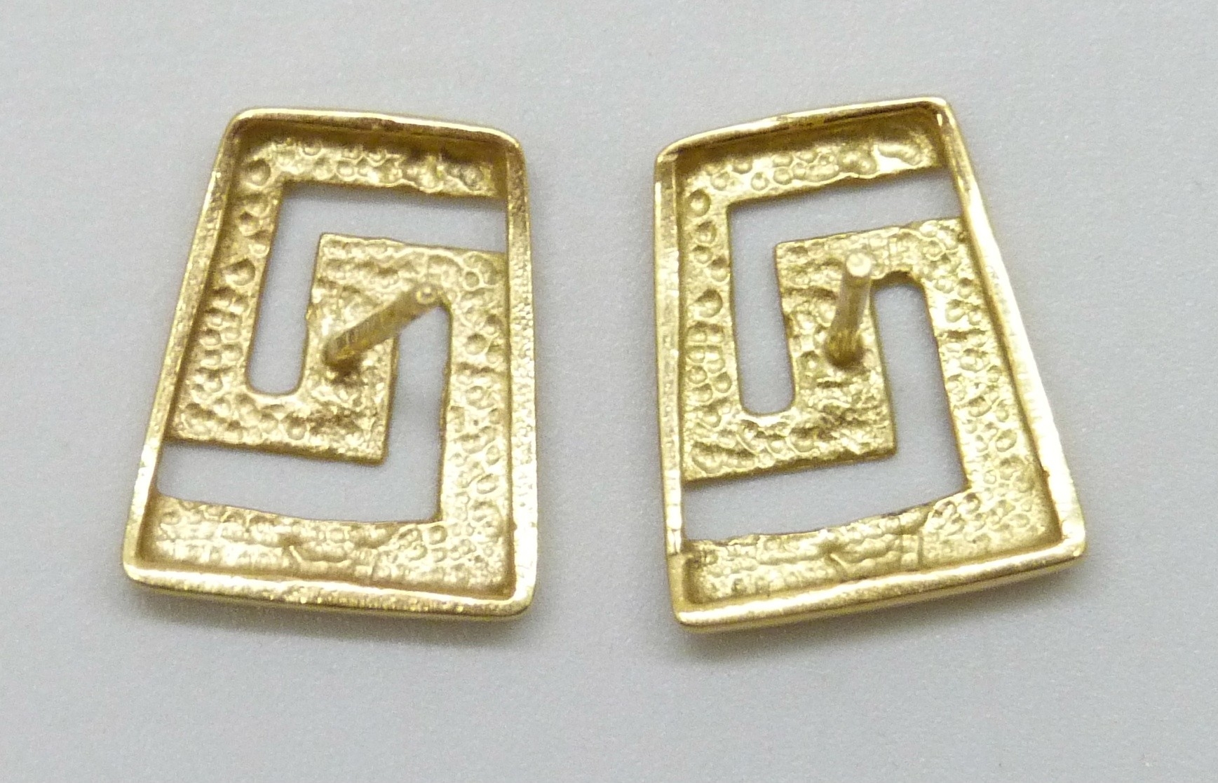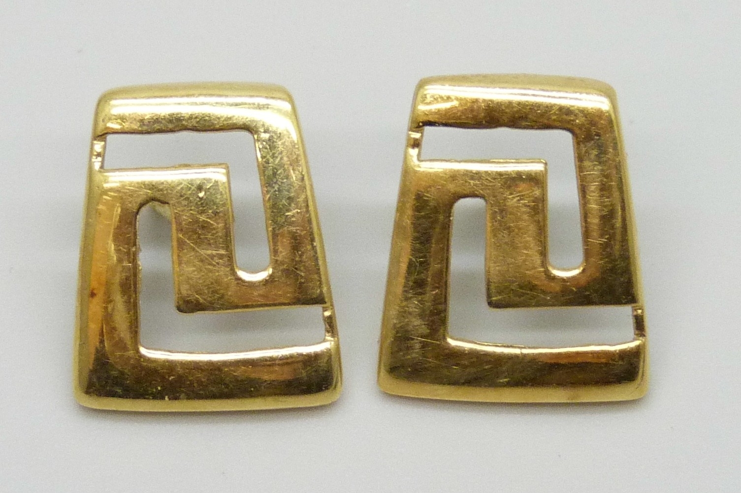 A pair of 18ct gold Greek key design earrings, 3.5g, 1.5cm
