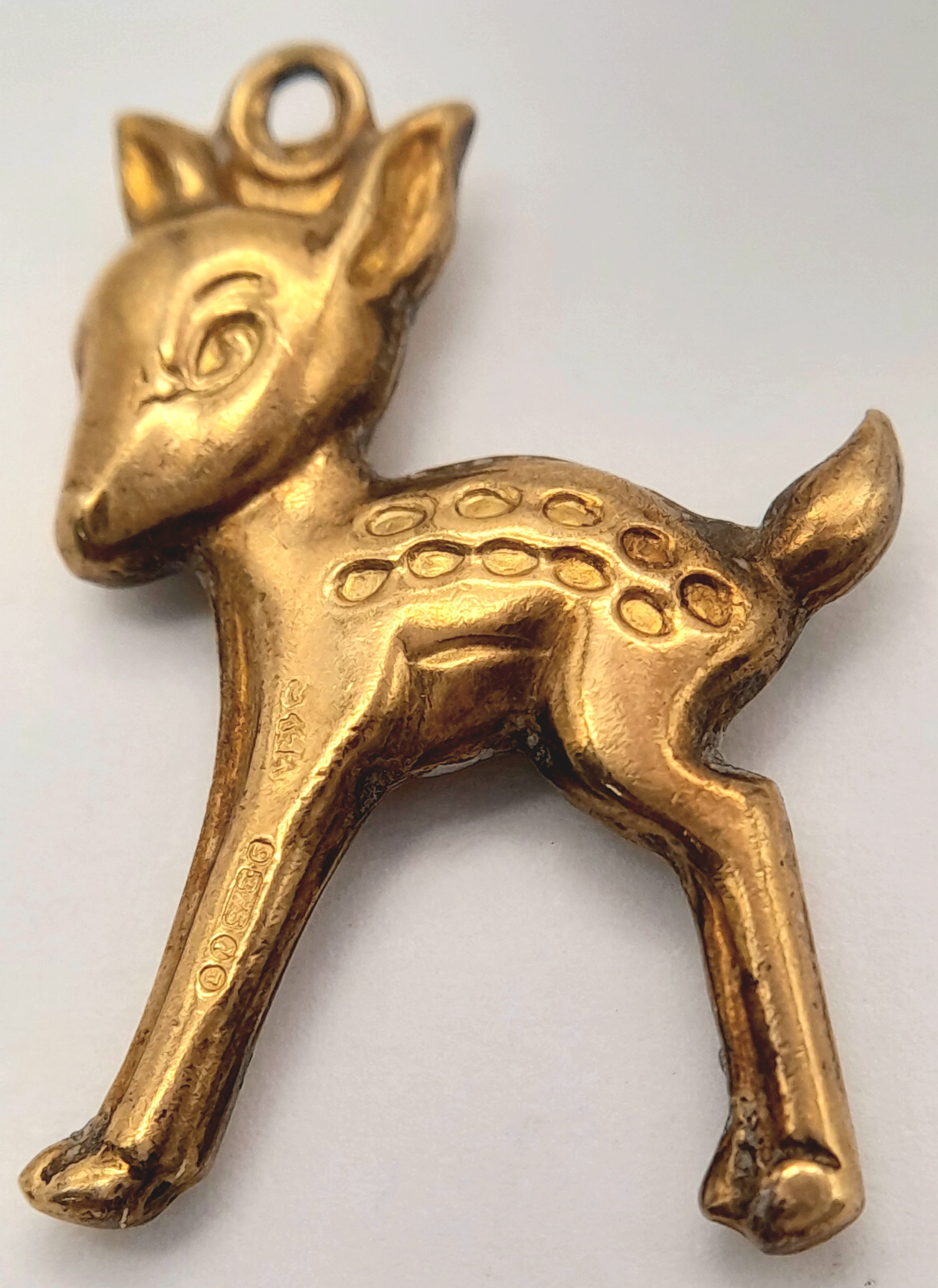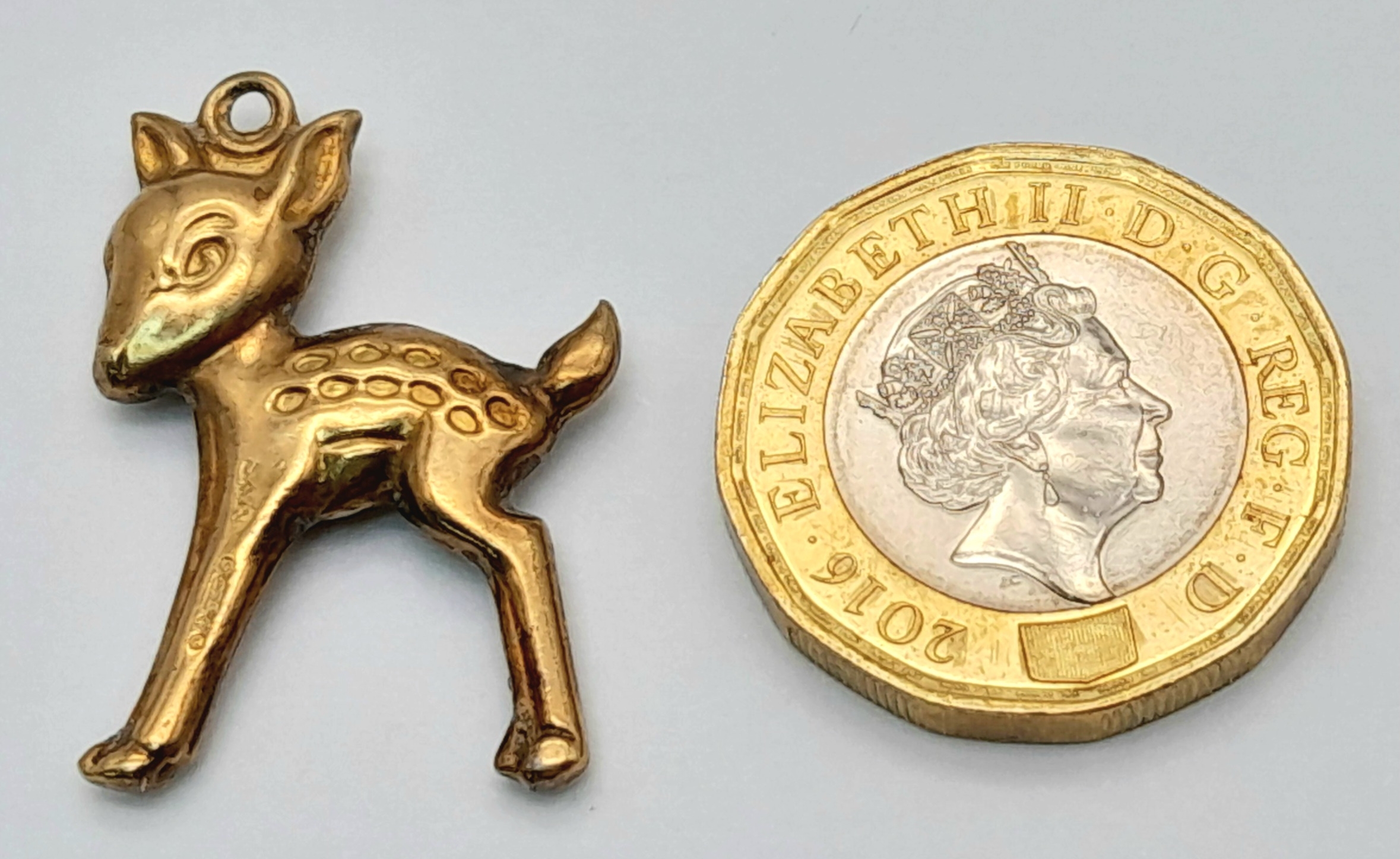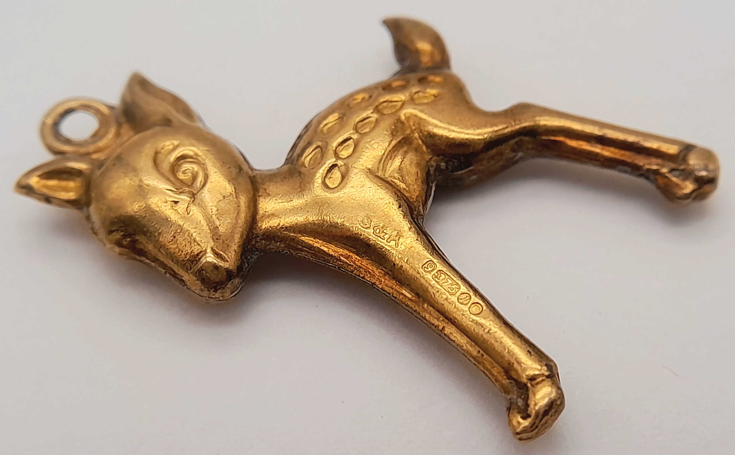 A CUTE BABY DEER CHARM OR PENDANT IN 9K GOLD . 1.8gms