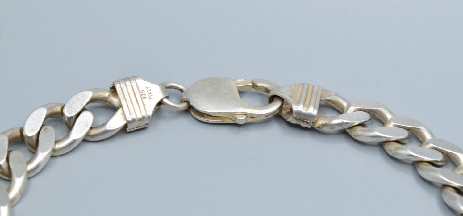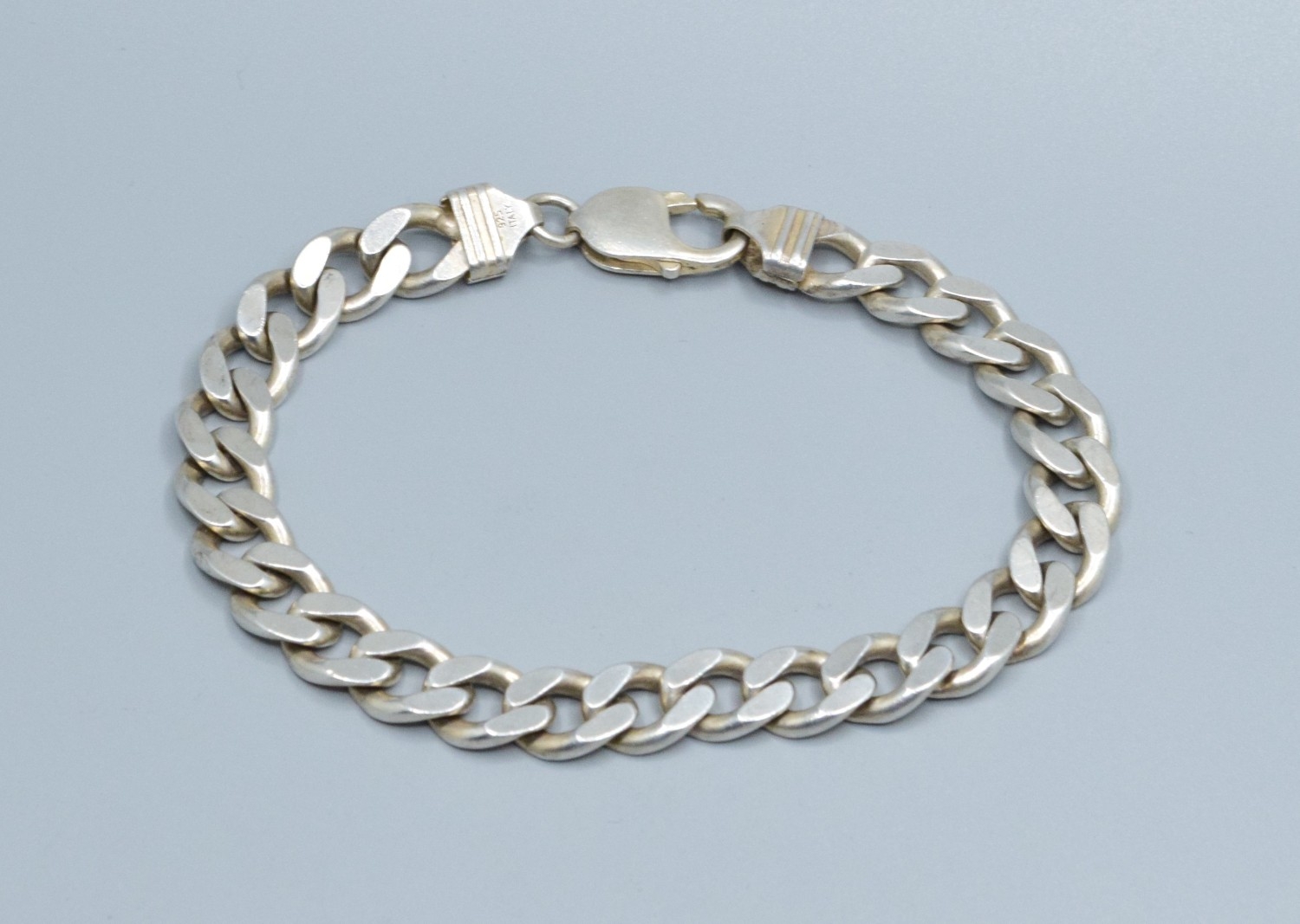925 silver flat link bracelet with Lobster claw clasp 22cm long, 9.6mm wide, 34grams