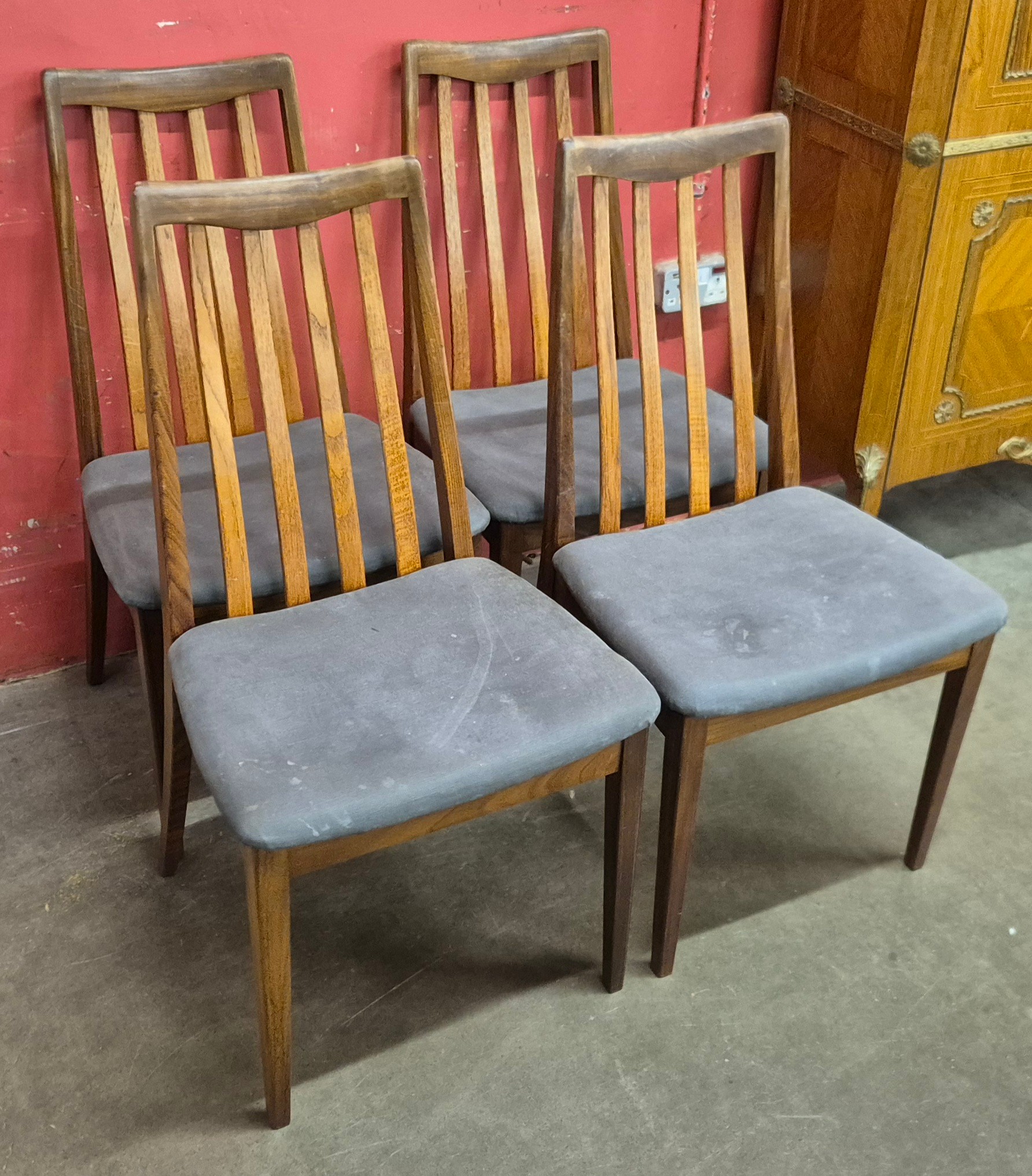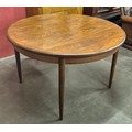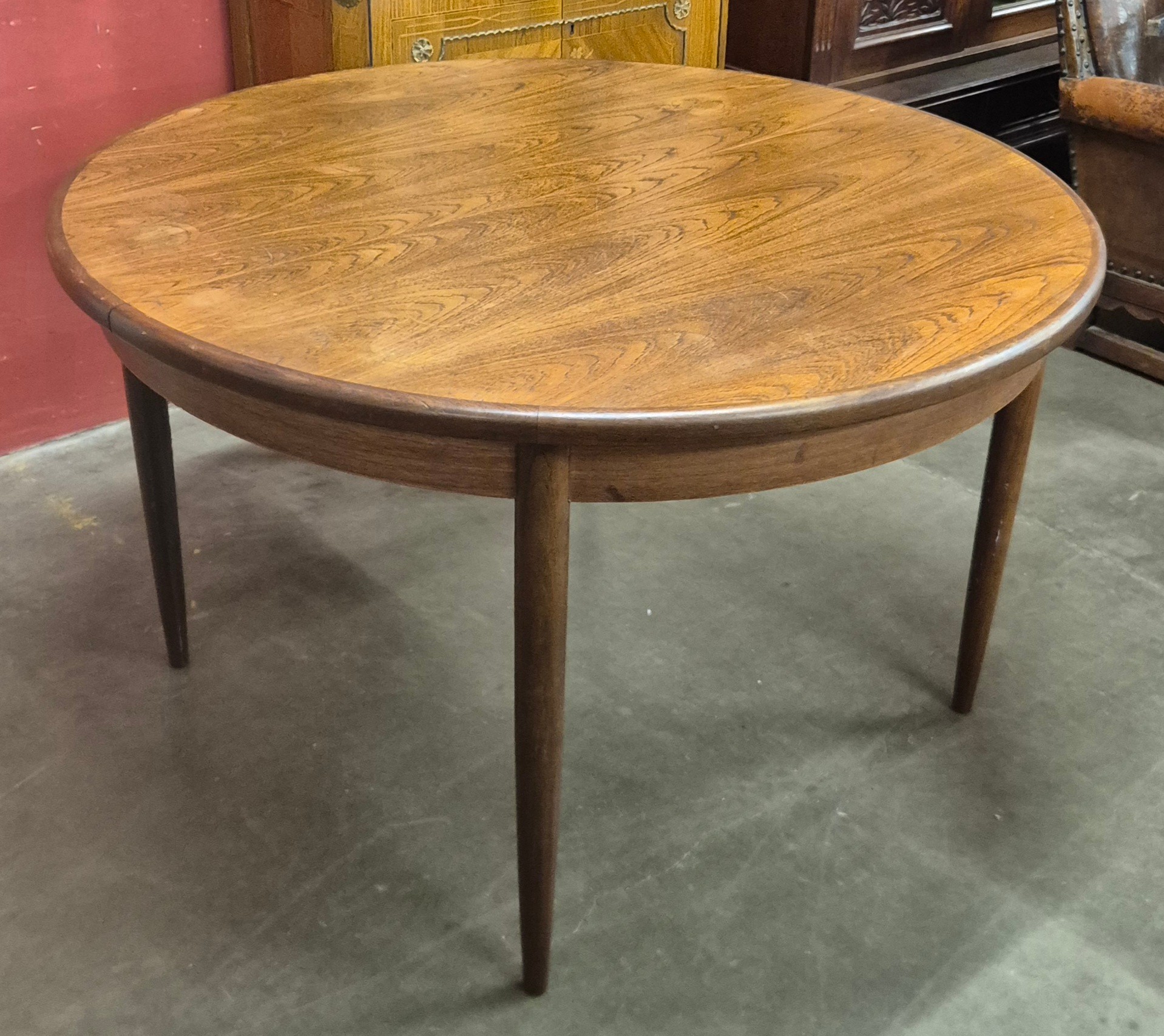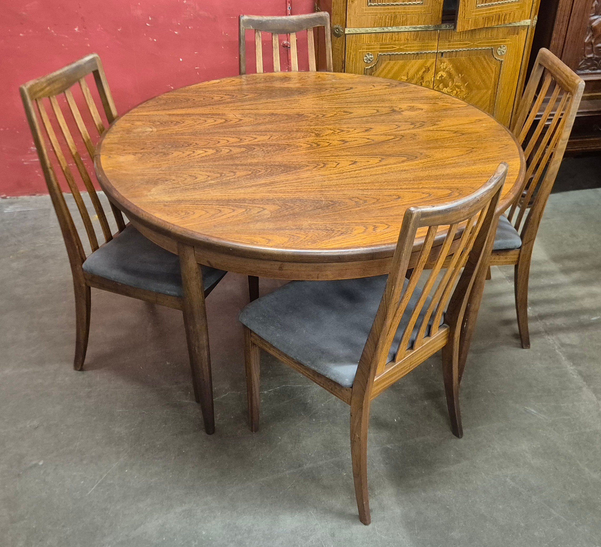 A G-Plan Fresco teak circular extending dining table and four chairs
