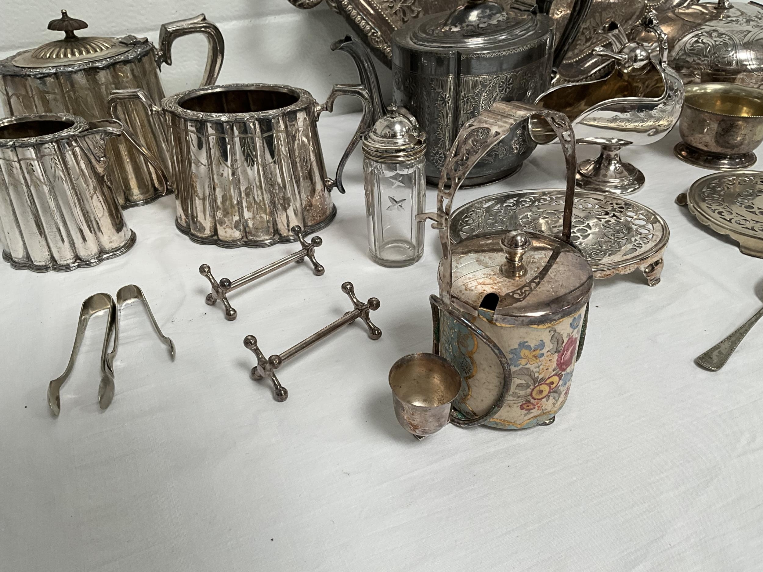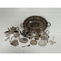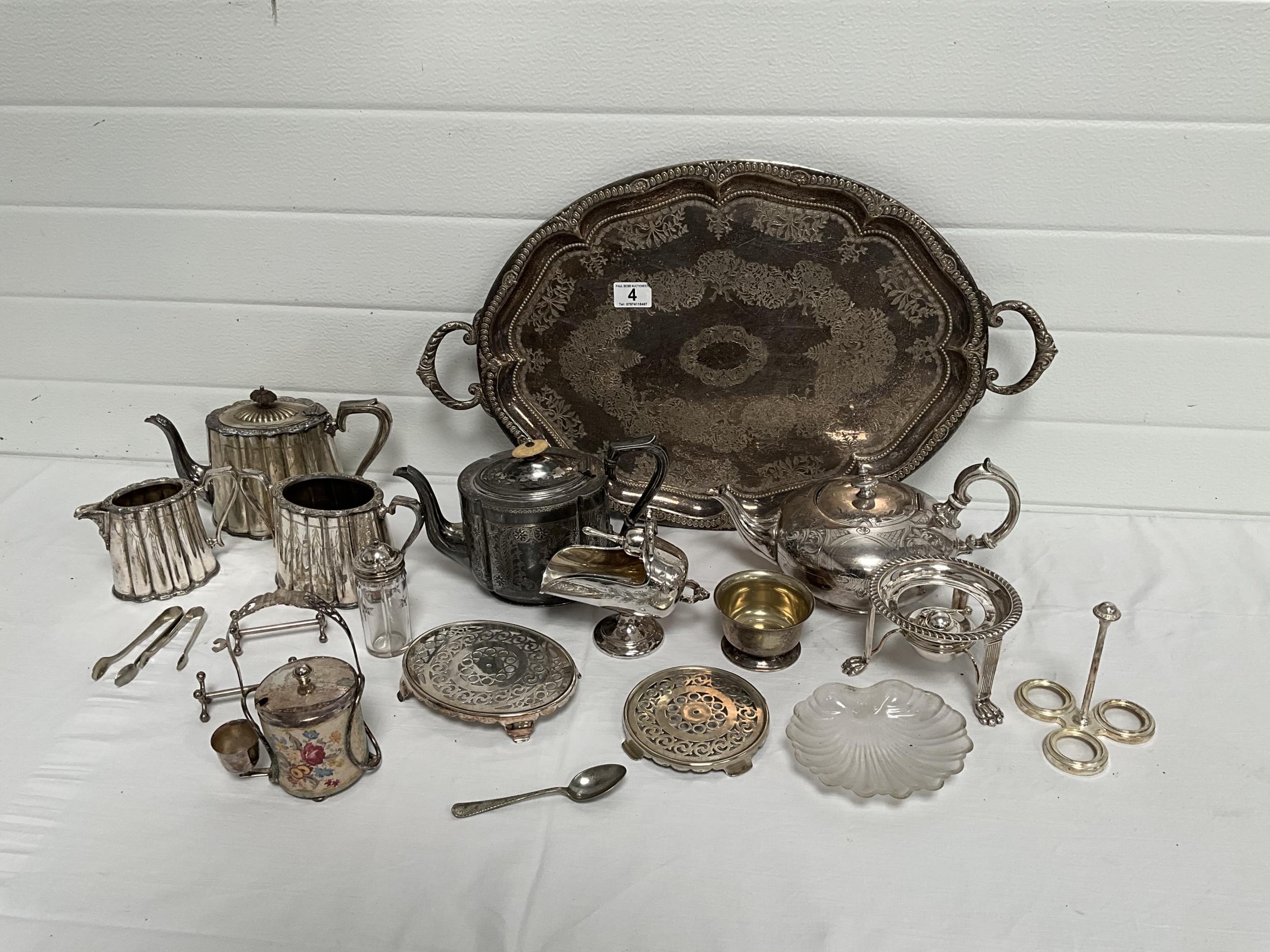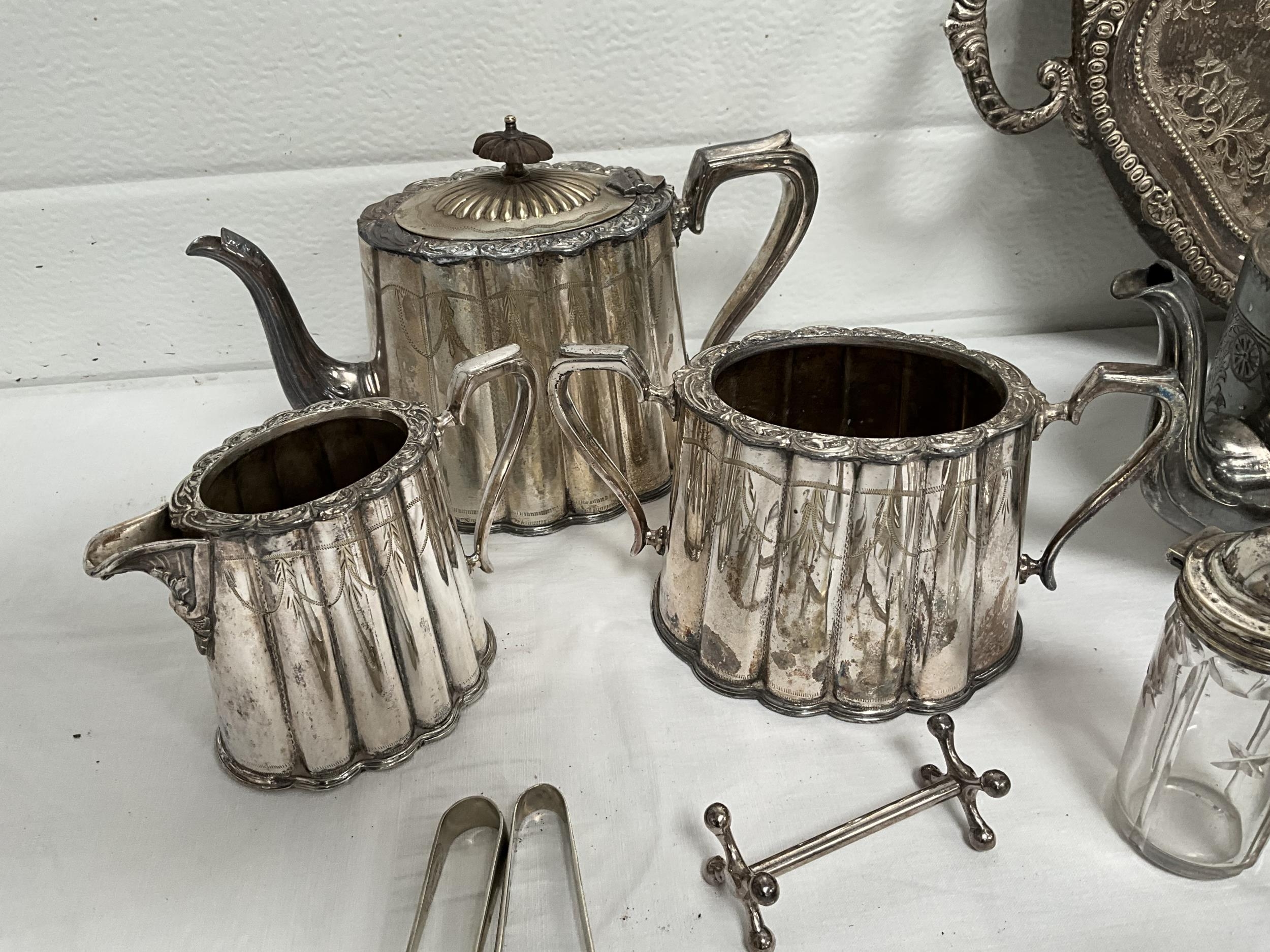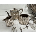 BOX OF SILVER PLATED ITEMS TO INCLUDE 3 PIECE TEA SET