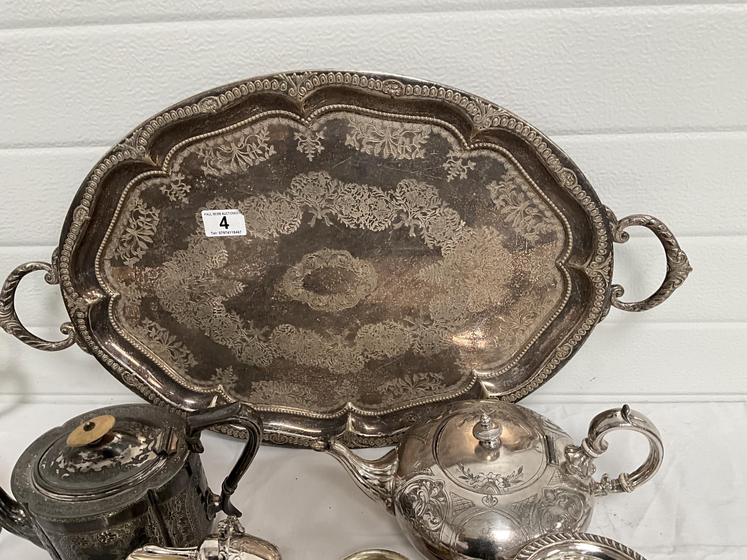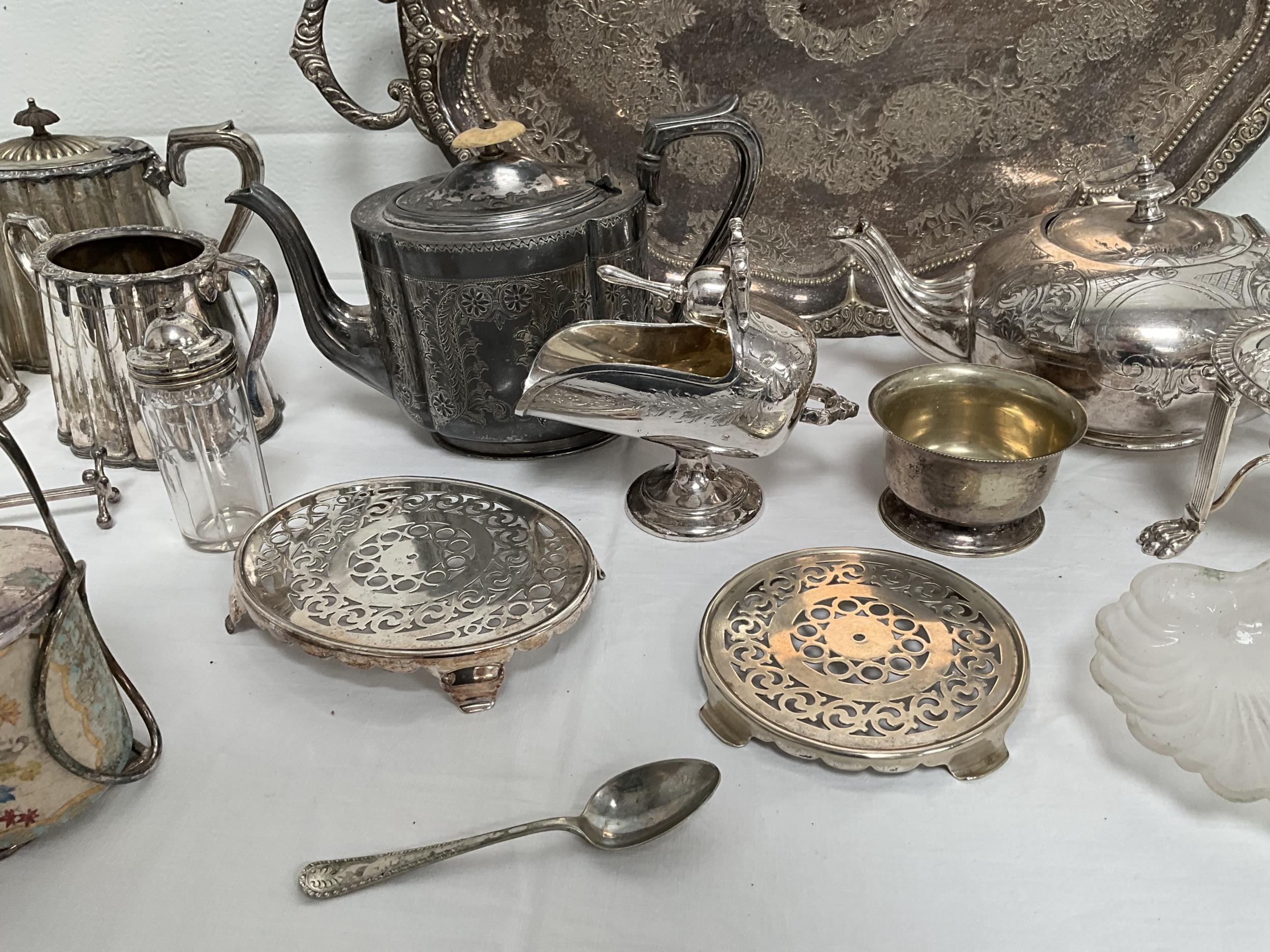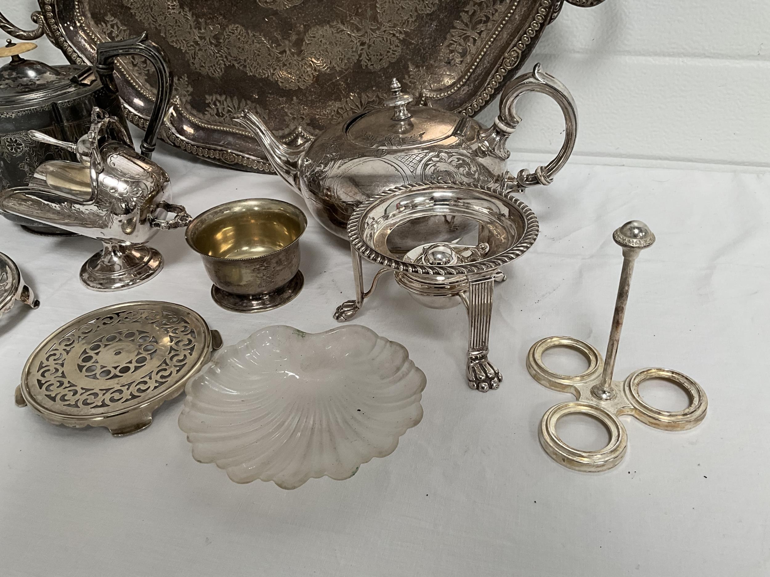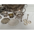 BOX OF SILVER PLATED ITEMS TO INCLUDE 3 PIECE TEA SET