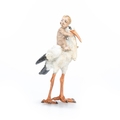 A COLD PAINTED BRONZE MODEL OF A BABY-BEARING STORK