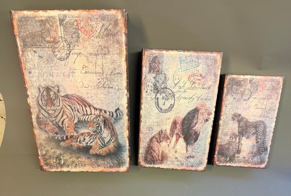 Three Various Sized Storage Boxed In The Form Of Books Advertising African Animals. (3)