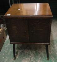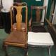 Oak Carver Chair on square section supports, centre splat, pierced triangle, 2 Beech Queen Anne Style Side Chairs with cabriole legs & high backs & Grey Painted Antique Style Stool (4)