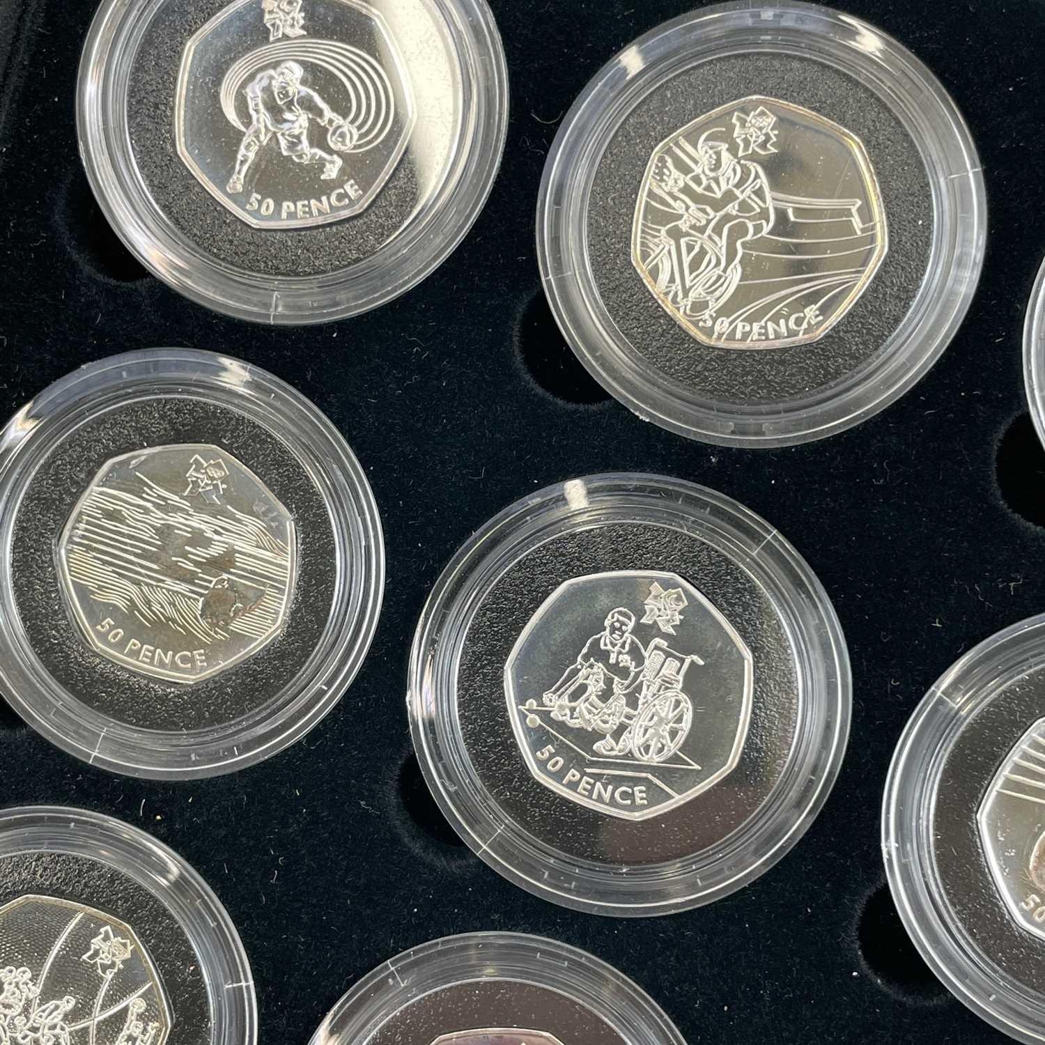 UK 50 pence 2012 Olympics London Silver 50p Sports Collection (26 of 29 coins) A cased encapsulated set of 26 of the 29 silver uncirculated 2012 Olympic sports 50p coins. N.B. Missing: Modern Pentathlon, Wheelchair Rugby and Canoeing.