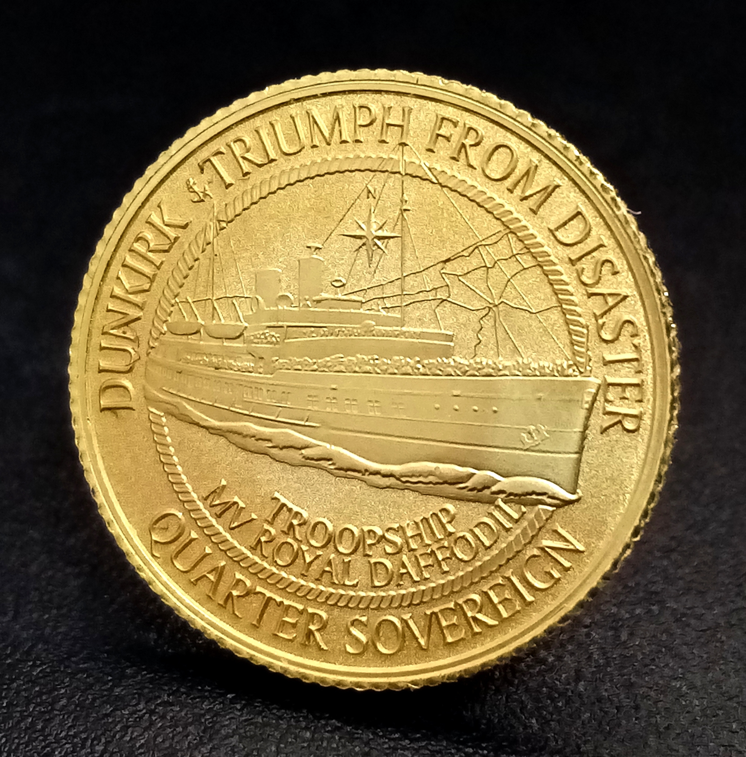 A 2020 QUEEN ELIZABETH II TRISTAN DE CUNHA QUARTER 1/4 SOVEREIGN COIN TO COMMEMORATE THE 80TH ANNIVERSARY OF DUNKIRK. 2G. REF: C 6002