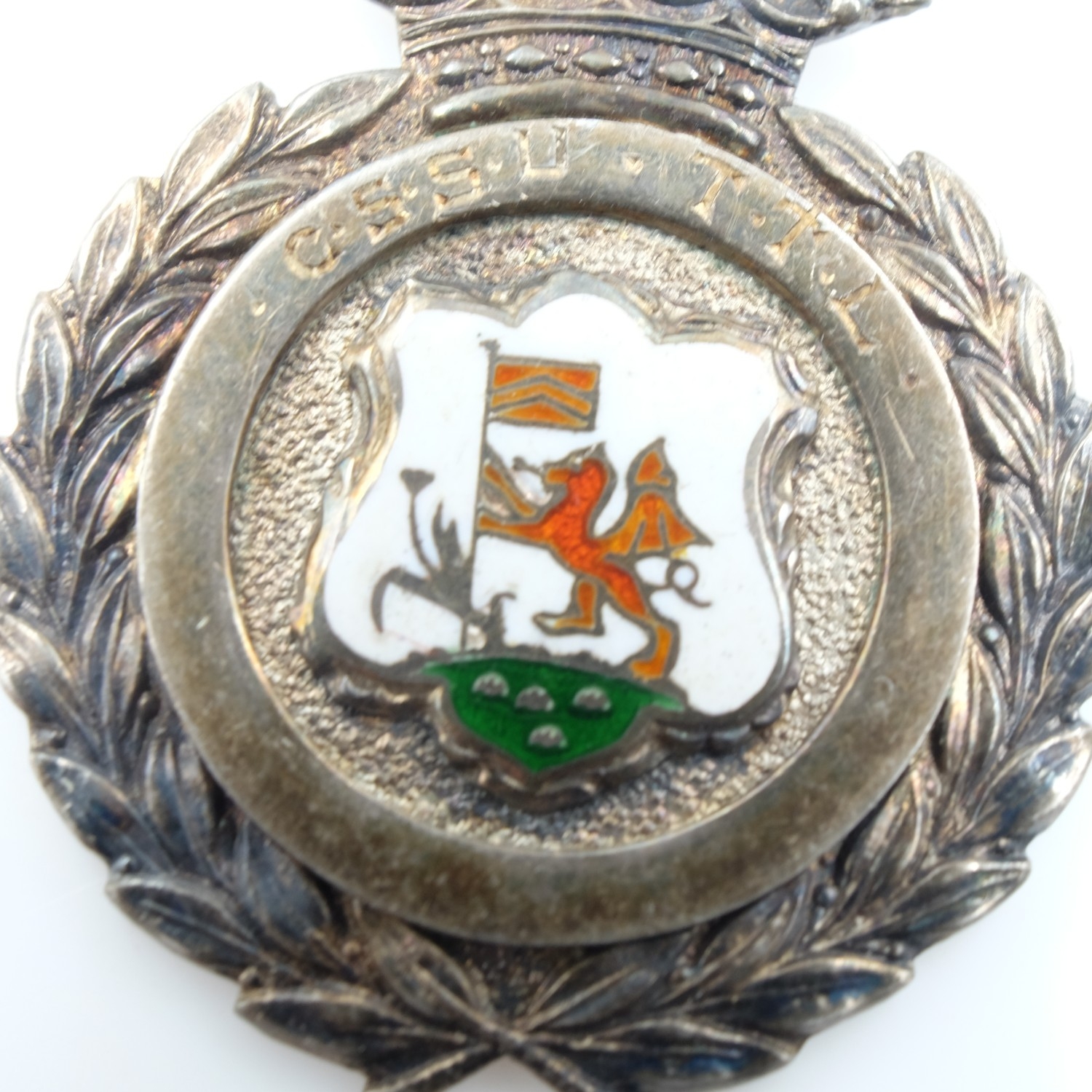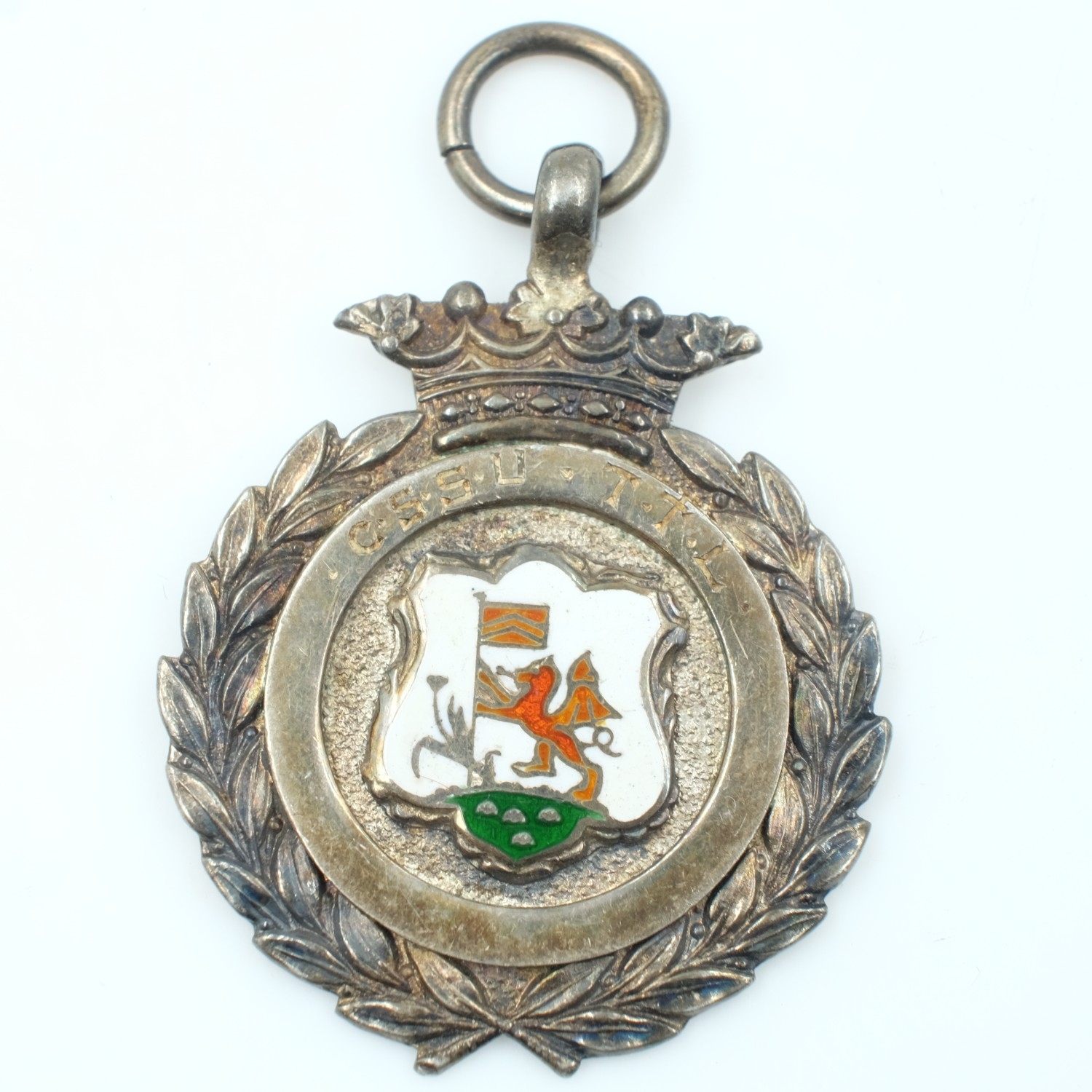 Silver and enamel Welsh dragon watch chain fob. UK P&P Group 0 (£7+VAT for the first lot and £1+VAT for subsequent lots)