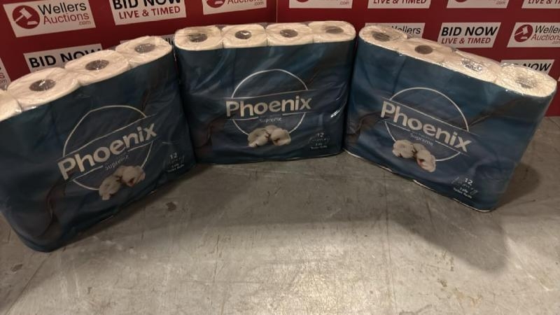 3X 12 PACK OF PHOENIX 3 PLY TOILET ROLLS