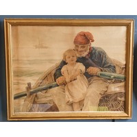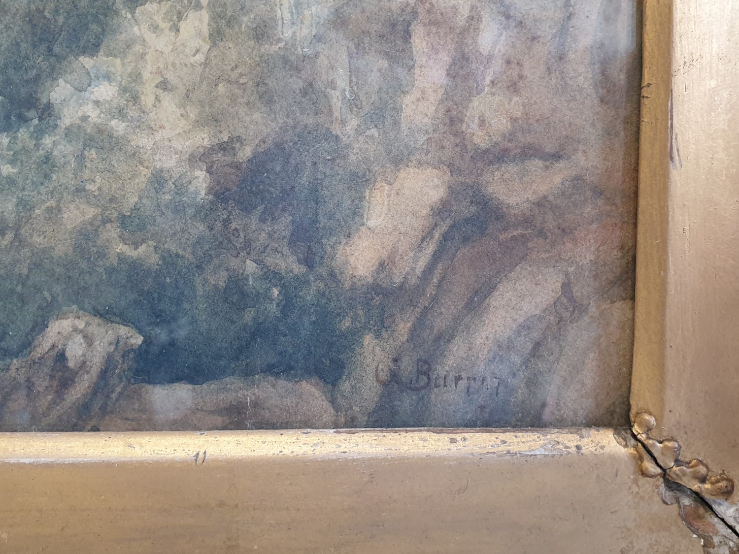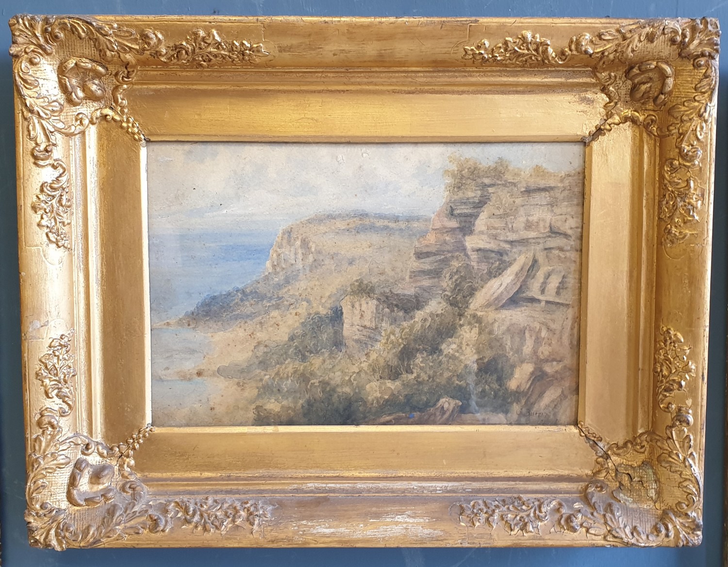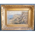 Gilt Framed Watercolour - Coastal Cliff Scene. Signed Bottom Right. H:41 x W:54cm