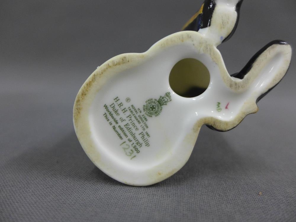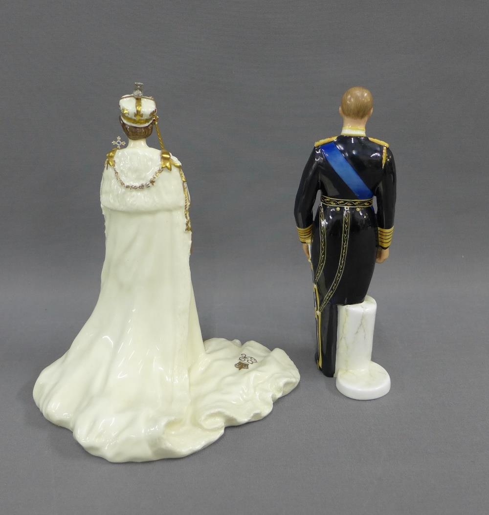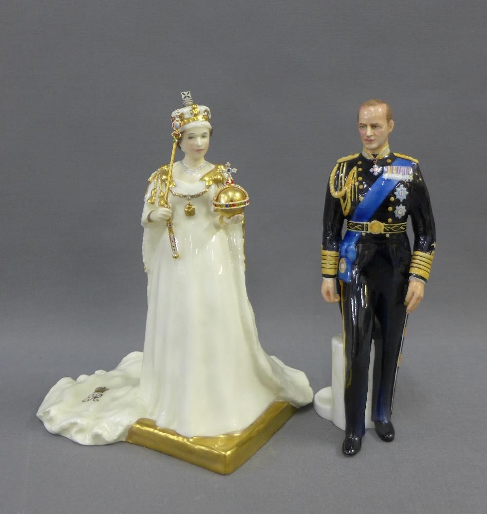 Royal Doulton limited edition figures, HRH Prince Philip, Duke of Edinburgh HN2386, 1231/1500 and Royal Doulton Classics figure Queen Elizabeth II, 495 / 1500 tallest 23cm (2)
