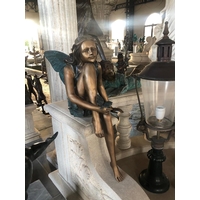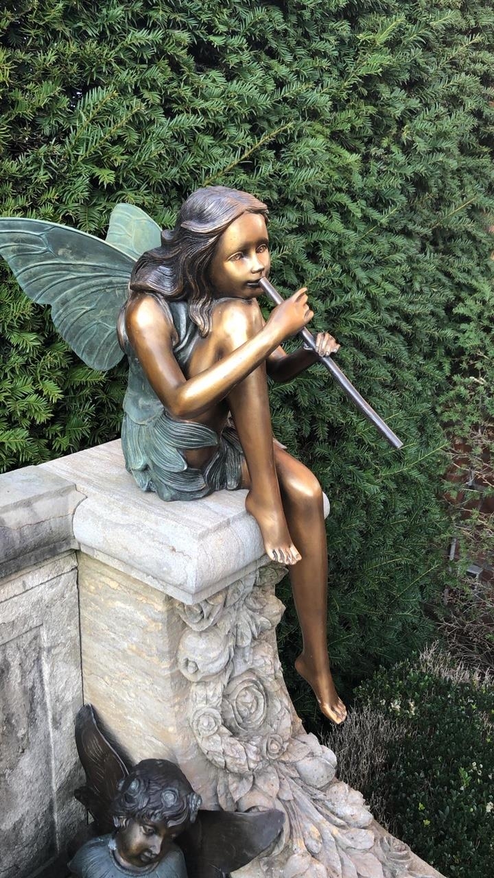 EXCEPTIONAL CAST BRONZE FIGURE DEPICTING A SUMMER ANGEL ON WALL PLAYING THE PIPE
