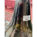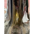 COMPRESSED GLOBULAR BOTTLE - SCRATCHES TO BODY, IT DOES NOT STAND STRAIGHT, CORK IN TOP, AIR BUBBLE TO BODY.