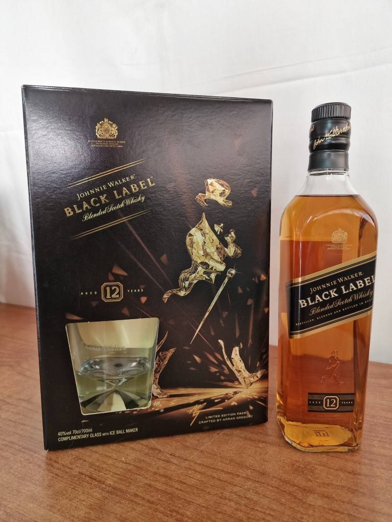 Johnnie Walker Black Label Blended Scotch Whisky, (70cl, 40%) in Presentation Box with Glass and Ice Ball Maker