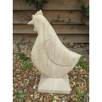 A hand carved abstract garden sculpture, circular design with sparrow pecking detail, 54cm tall x 45cm wide