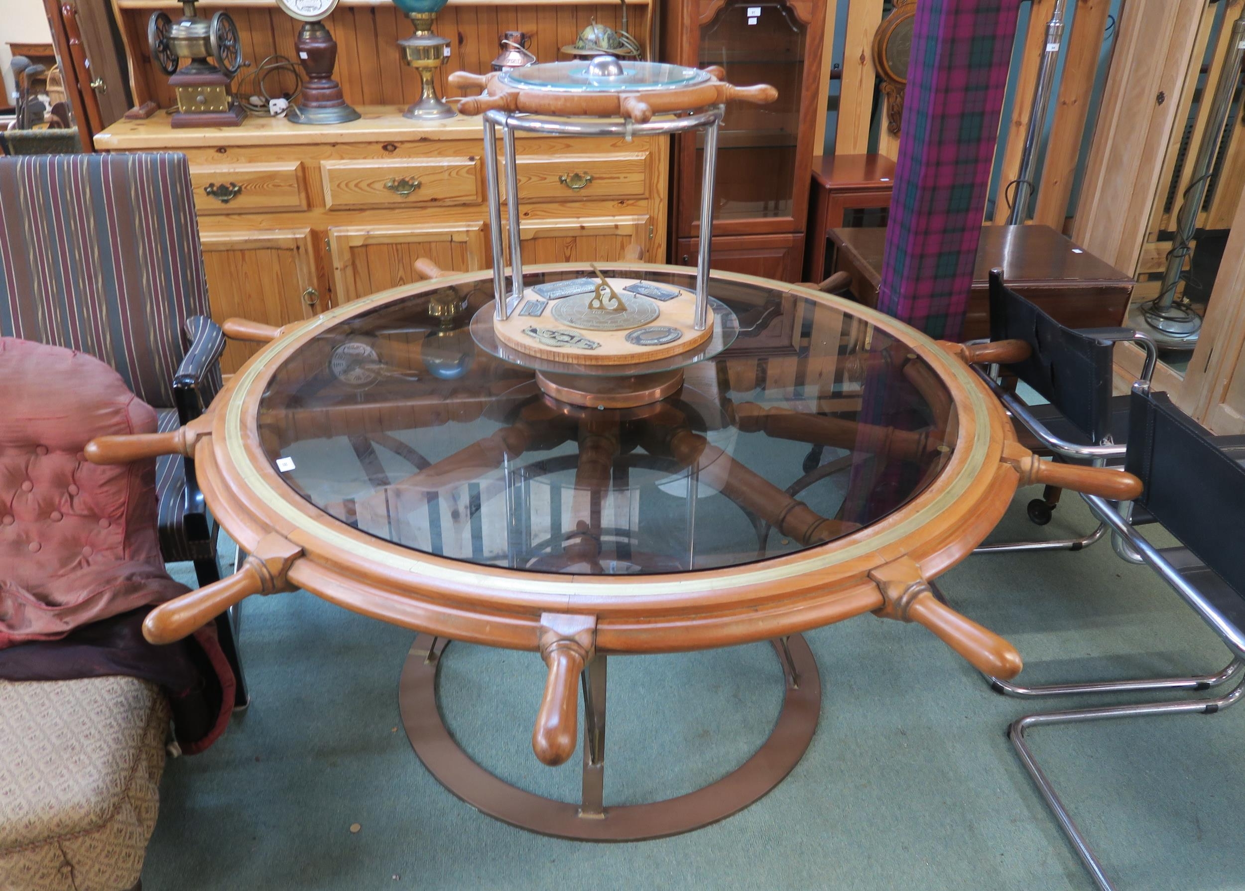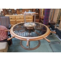 A large 20th century circular breakfast table in the form of a ships wheel and a similar circular occasional table (2)