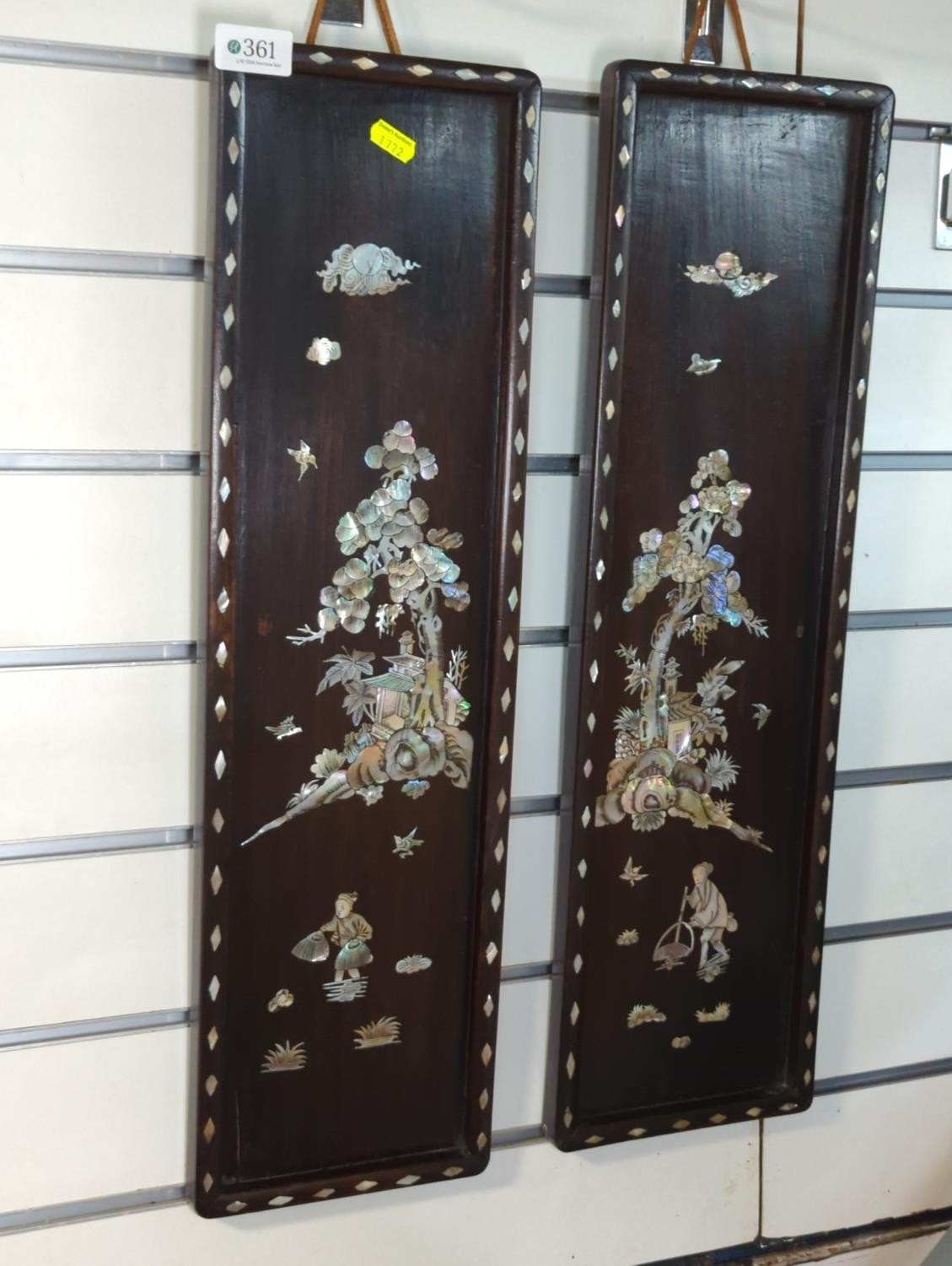 2 Mother of Pearl inlaid panels , each 17.5 x 62 cms