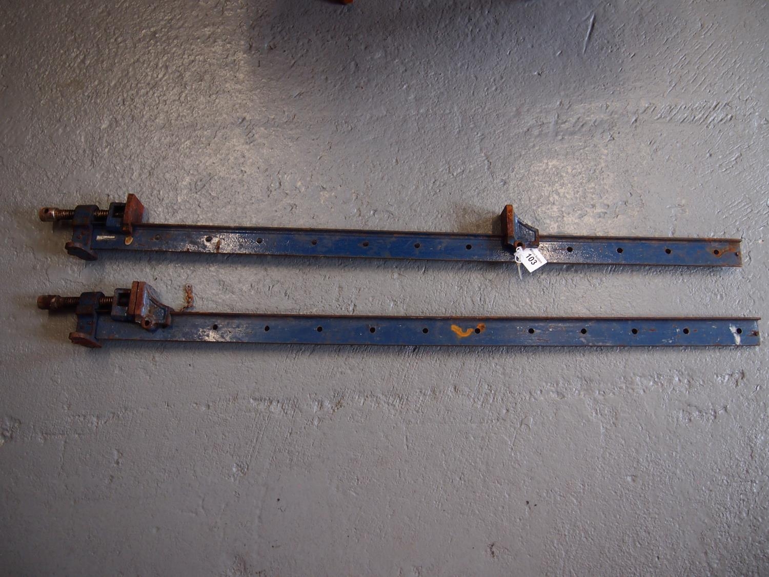 A pair of Iron/Metal Sash clamps stamped NuTool overall length approx. 126cm