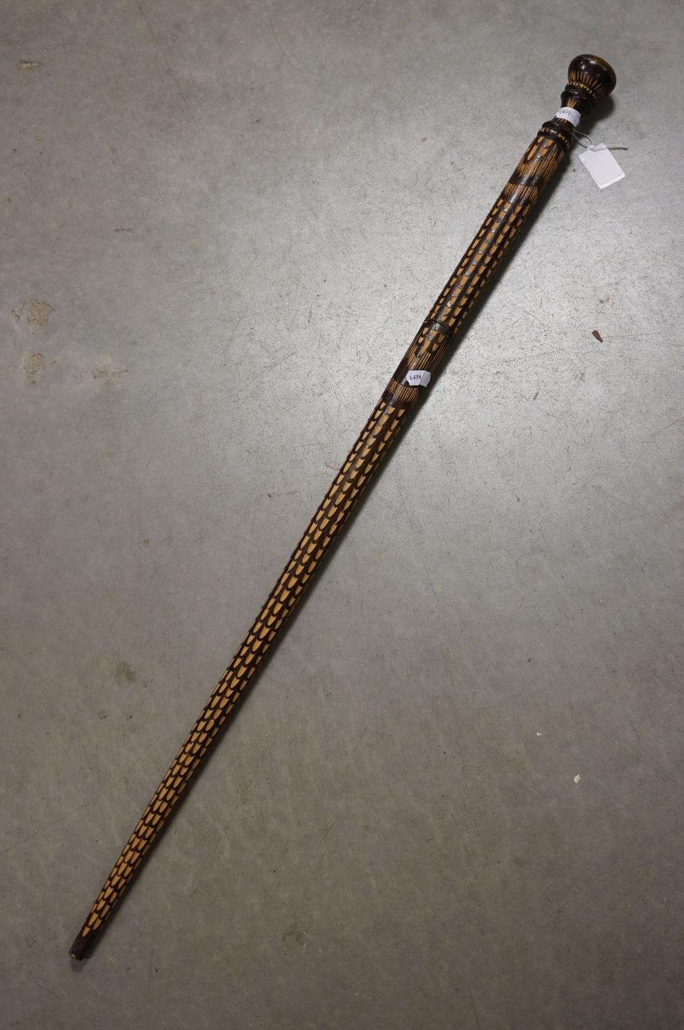 Folk Art Wooden Carved Walking Stick, 85cms long