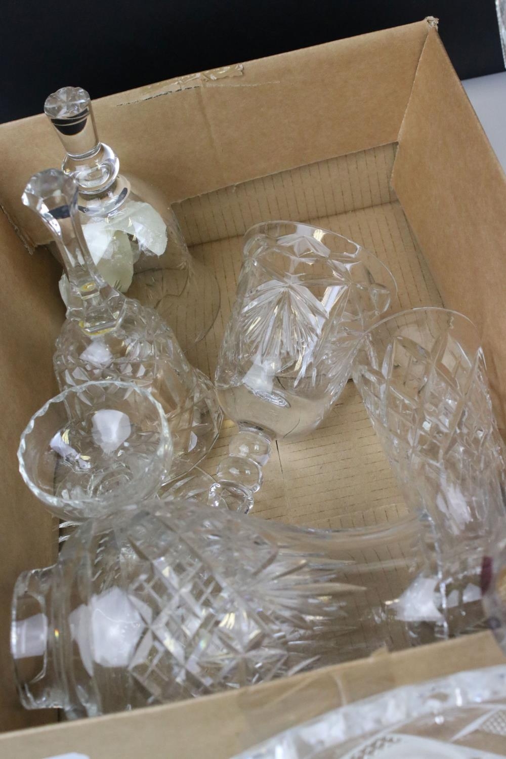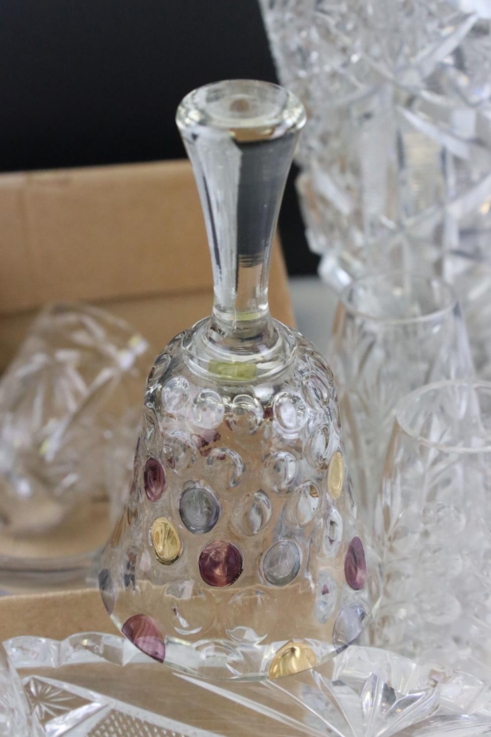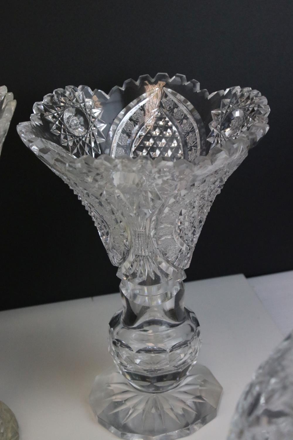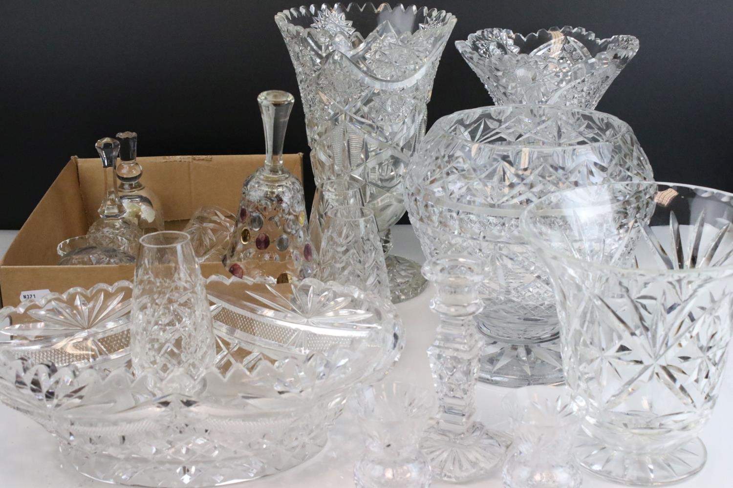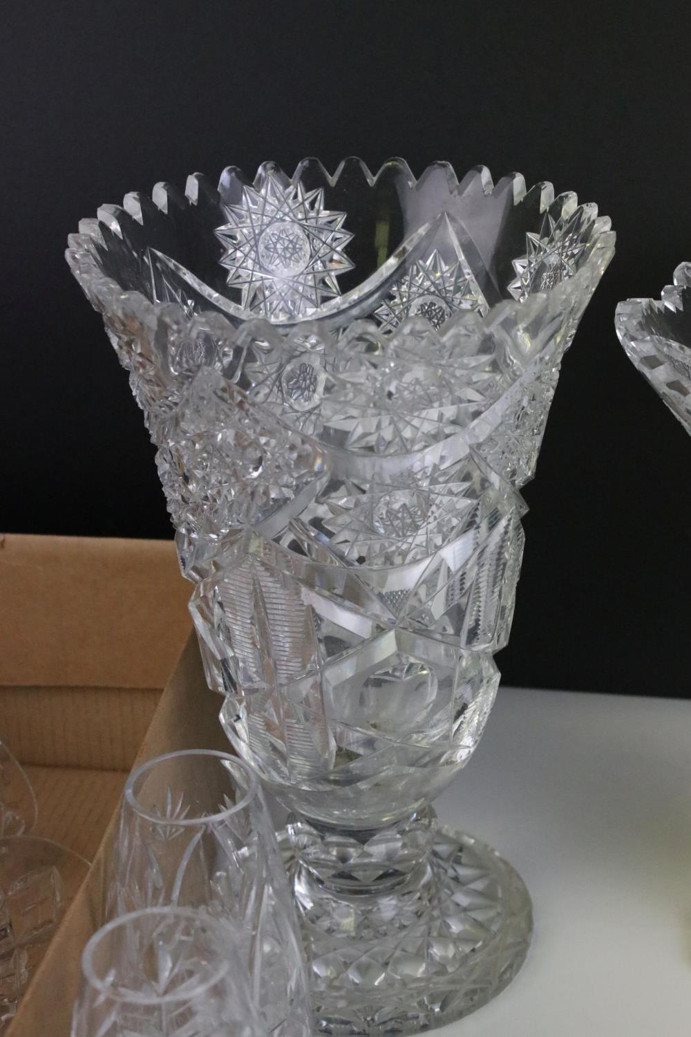 A large collection of mainly crystal cut glass to include vases, bowls and glasses.