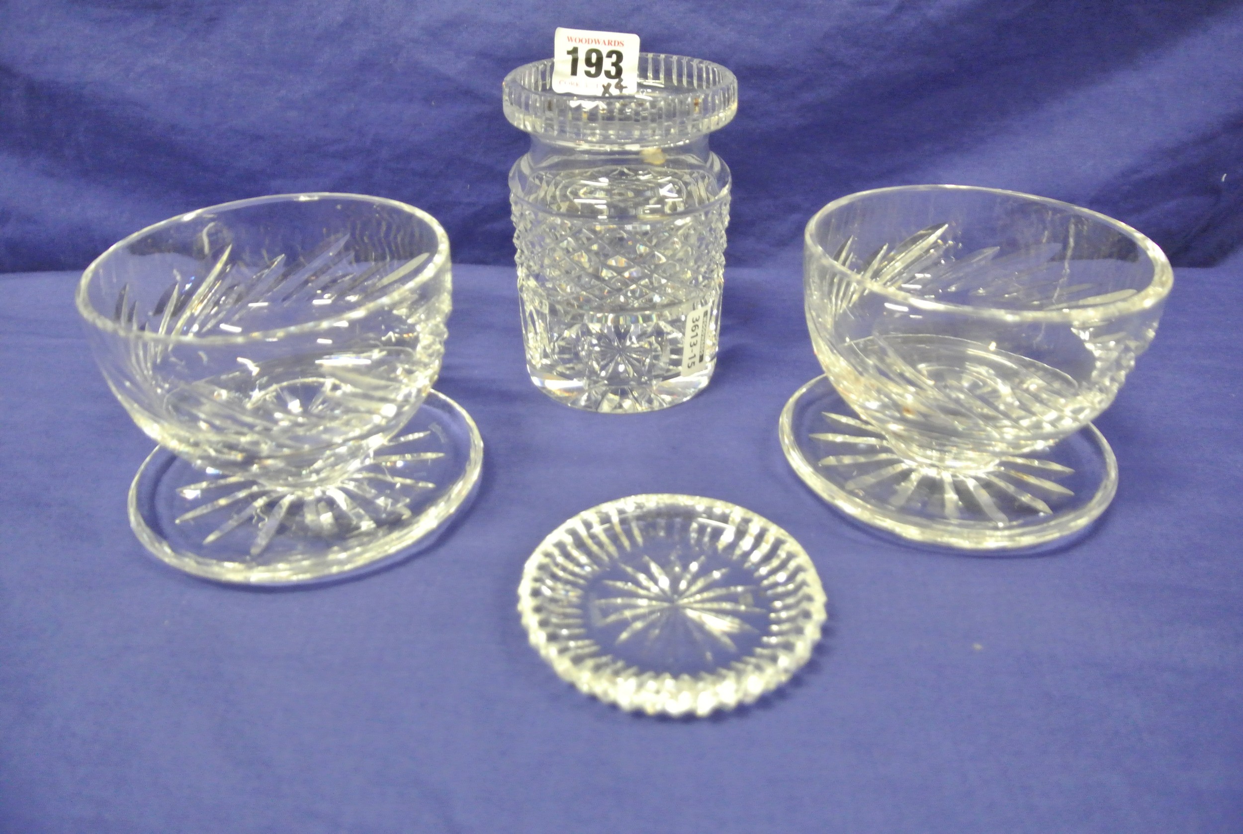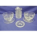 Waterford Crystal jam jar, two sundae glasses, and one small dish