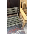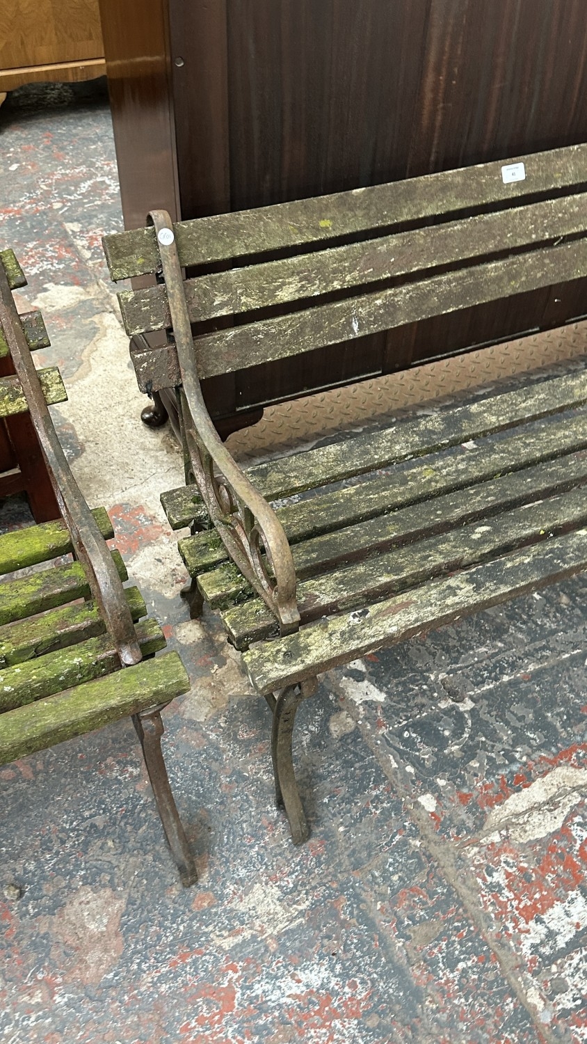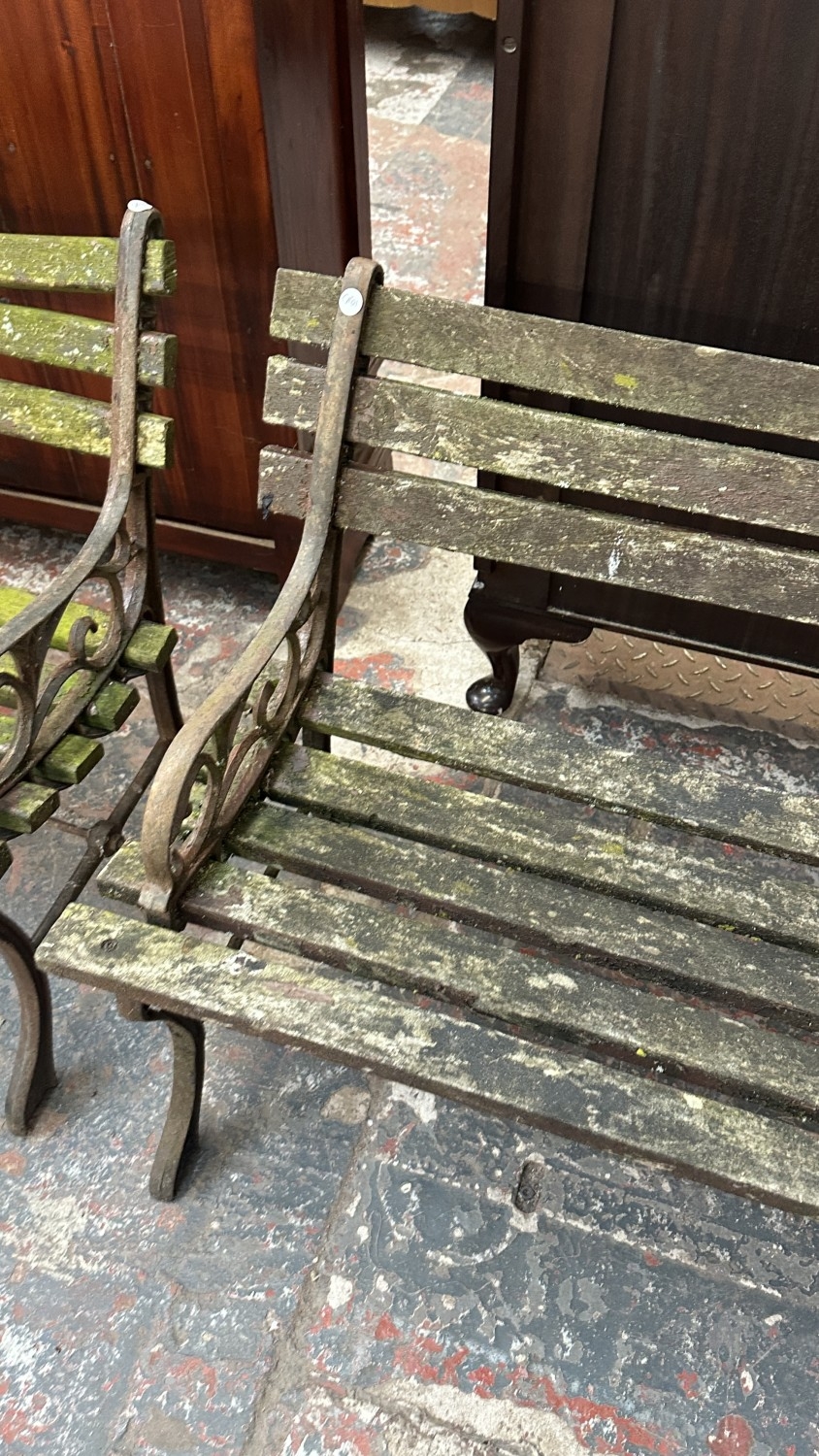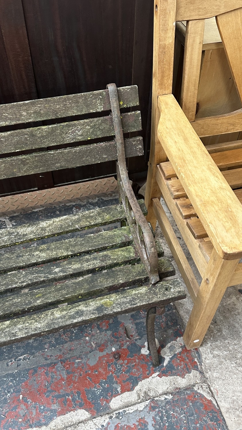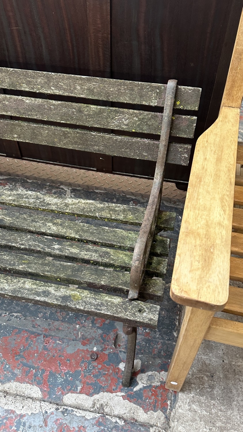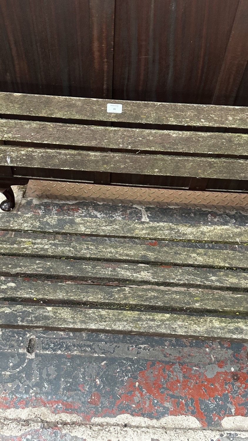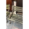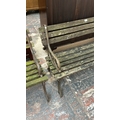 A Victorian style cast metal and wooden slatted garden bench...