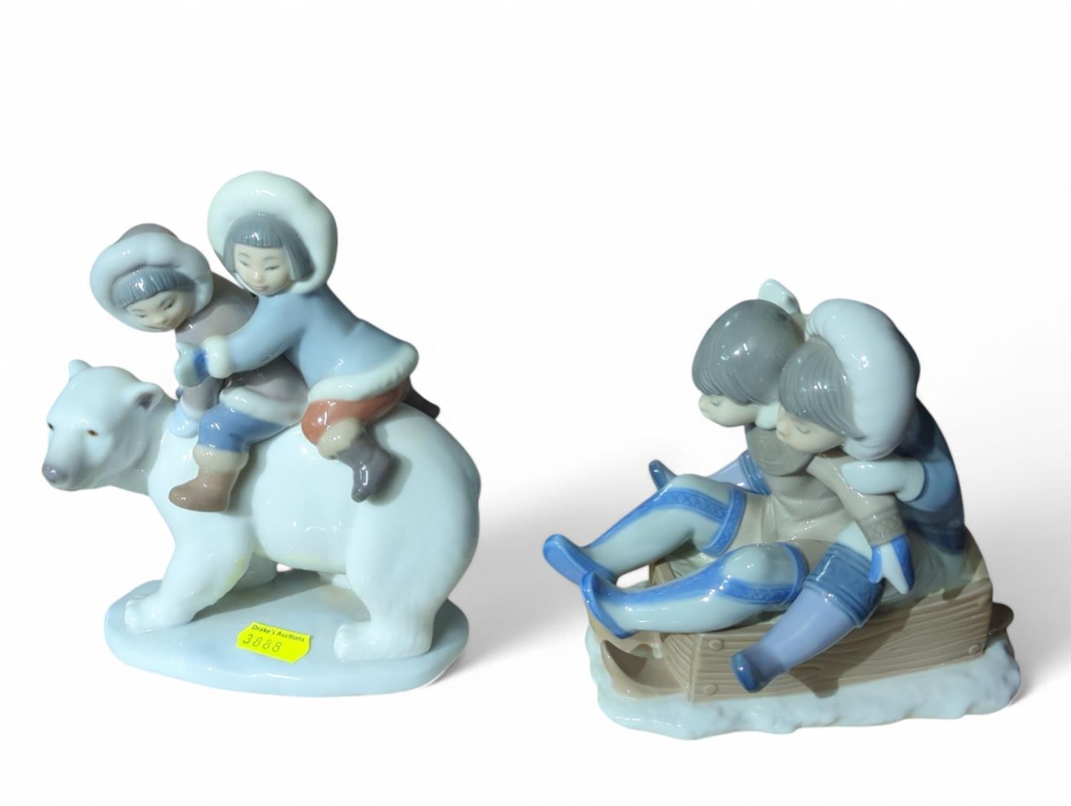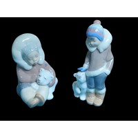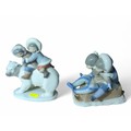 2 Lladro Eskimo Figural Groups including "hang on" with original box. Tallest H17cm