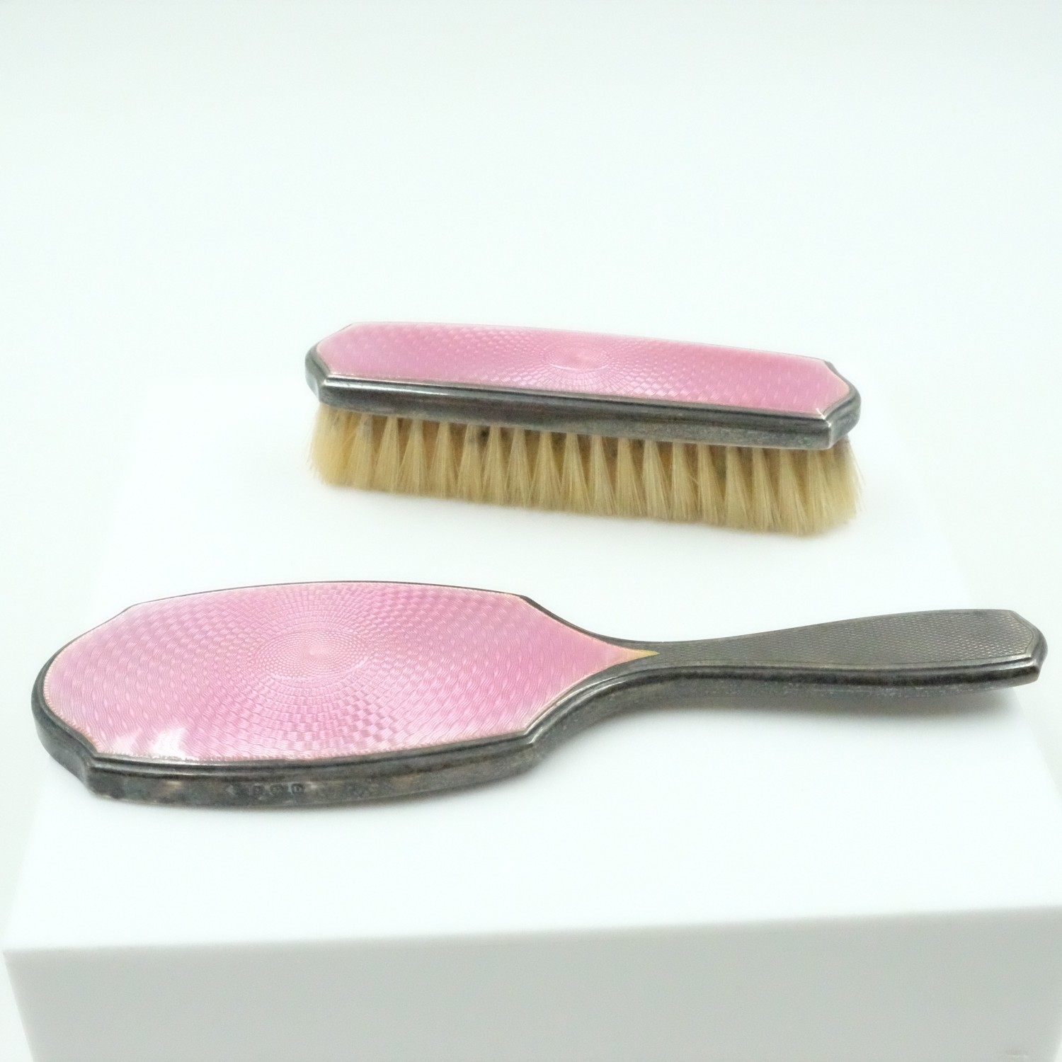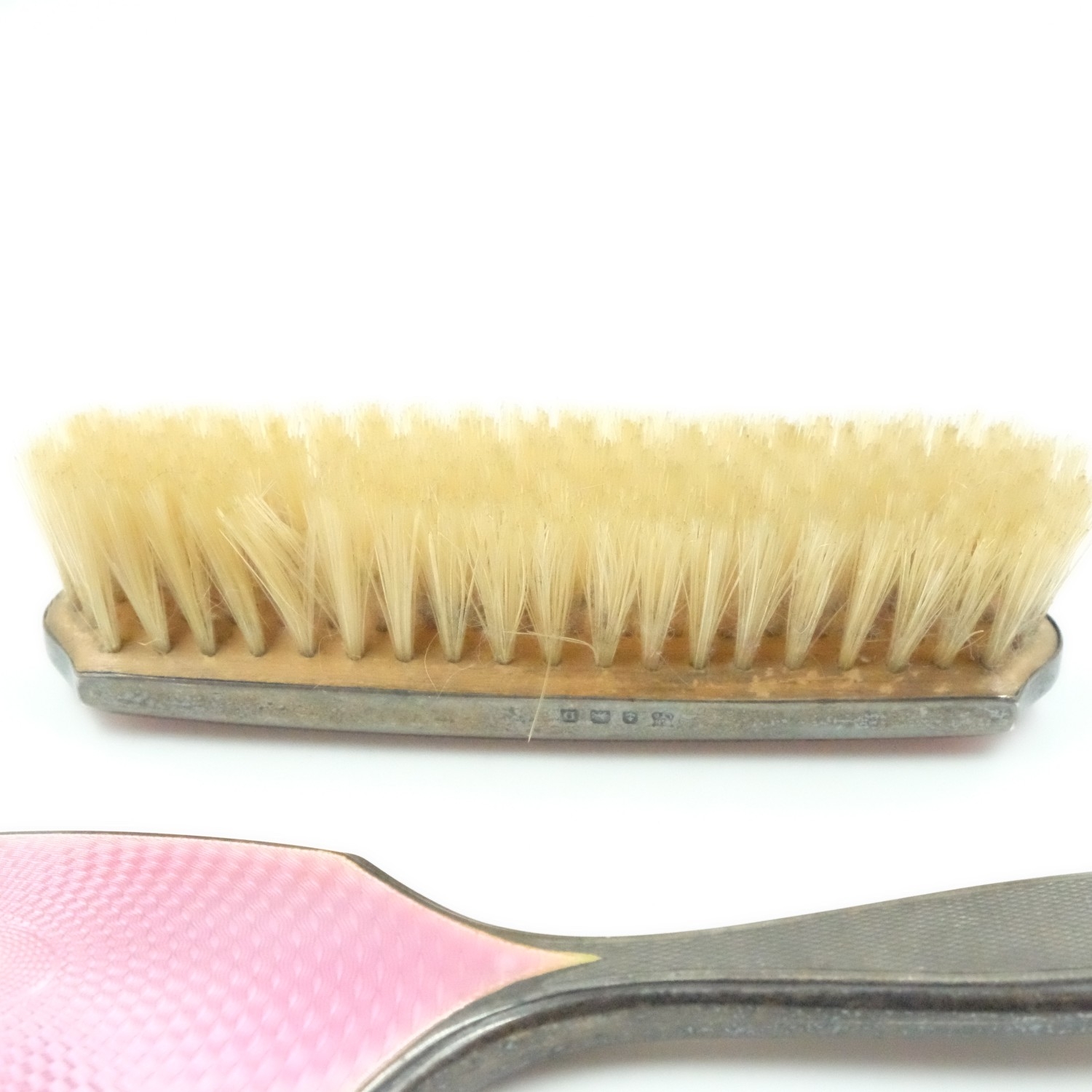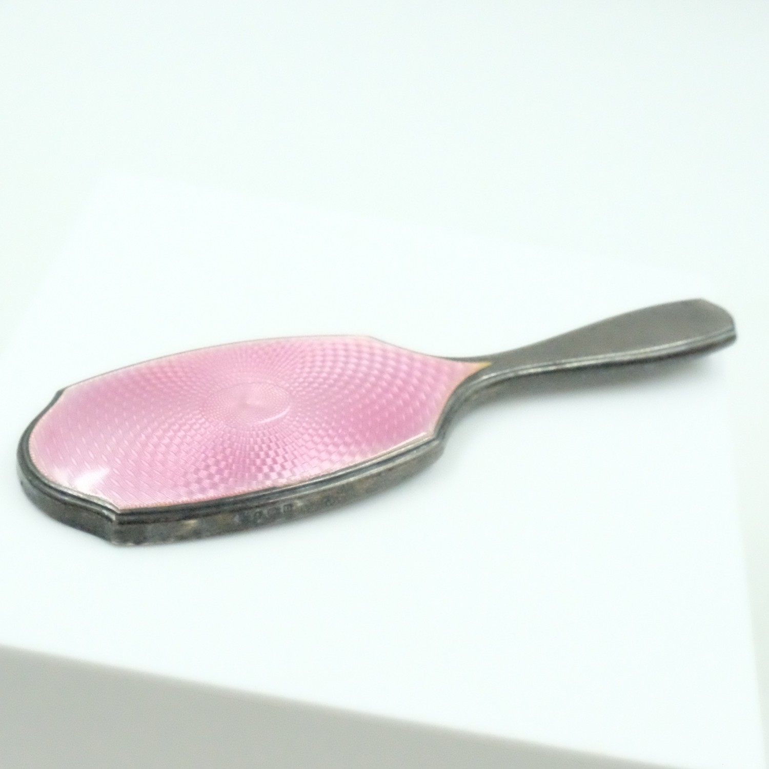Hallmarked silver and guilloche enamel brush and hand mirror with missing glass. UK P&P Group 1 (£18+VAT for the first lot and £2+VAT for subsequent lots)