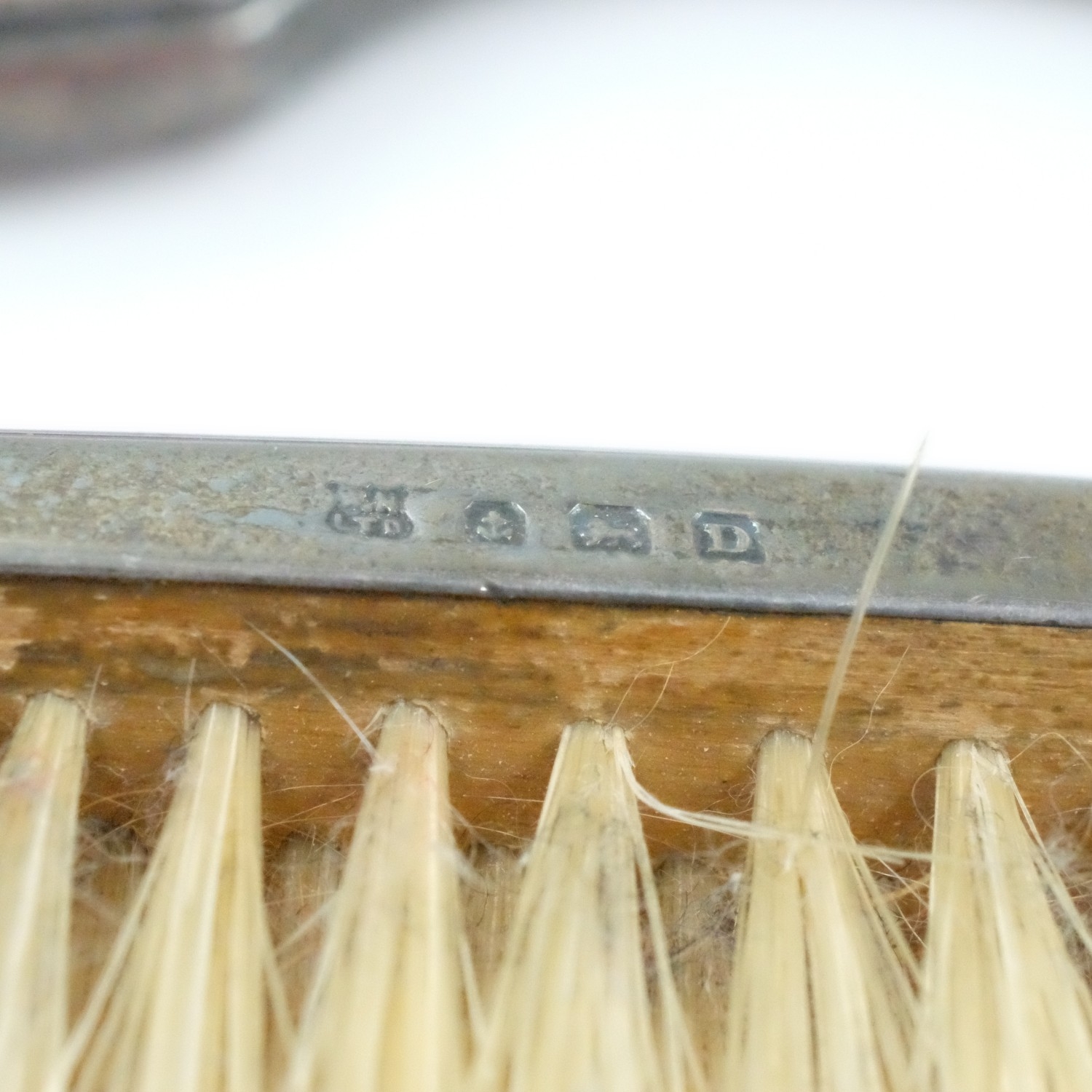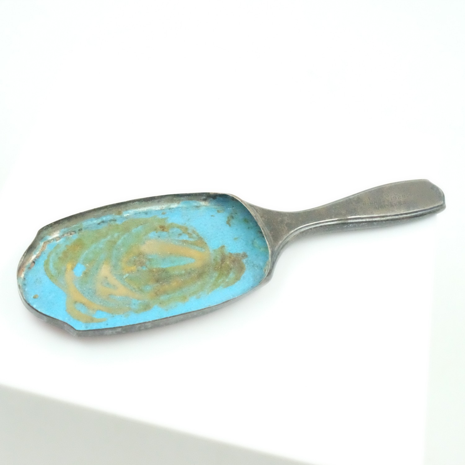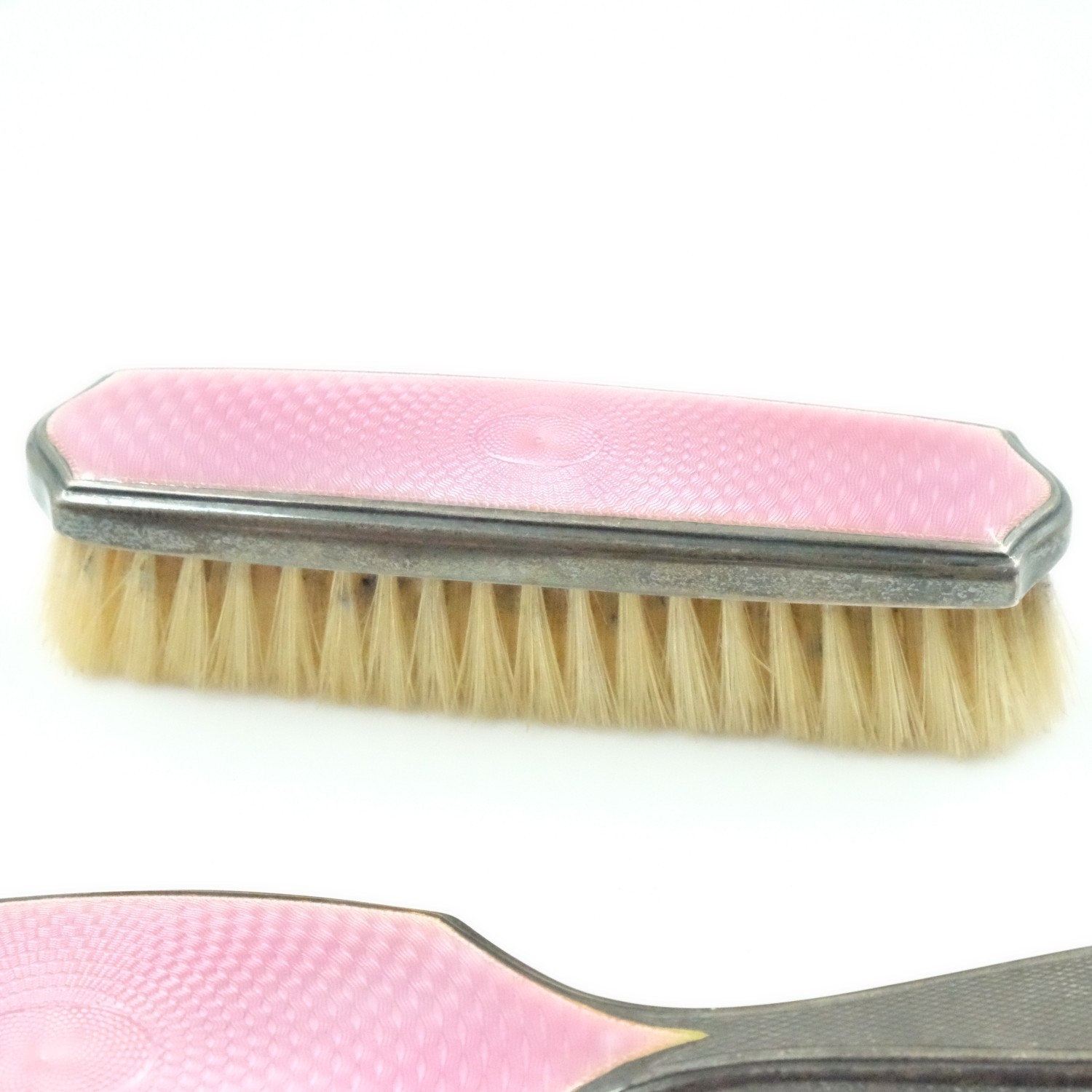 Hallmarked silver and guilloche enamel brush and hand mirror with missing glass. UK P&P Group 1 (£18+VAT for the first lot and £2+VAT for subsequent lots)