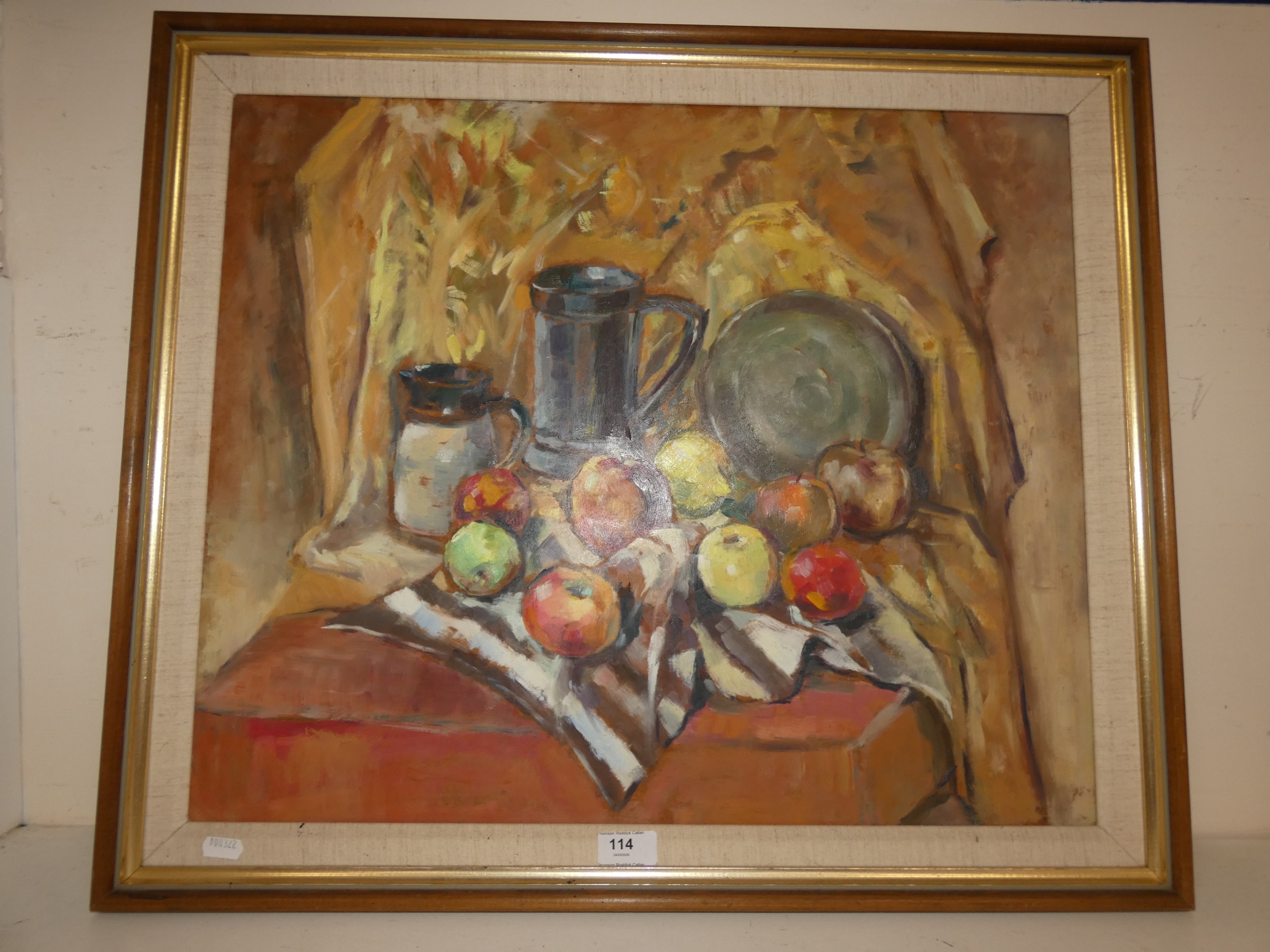 Margot Mackintosh (Scottish) Still life of fruit Oil on boar...