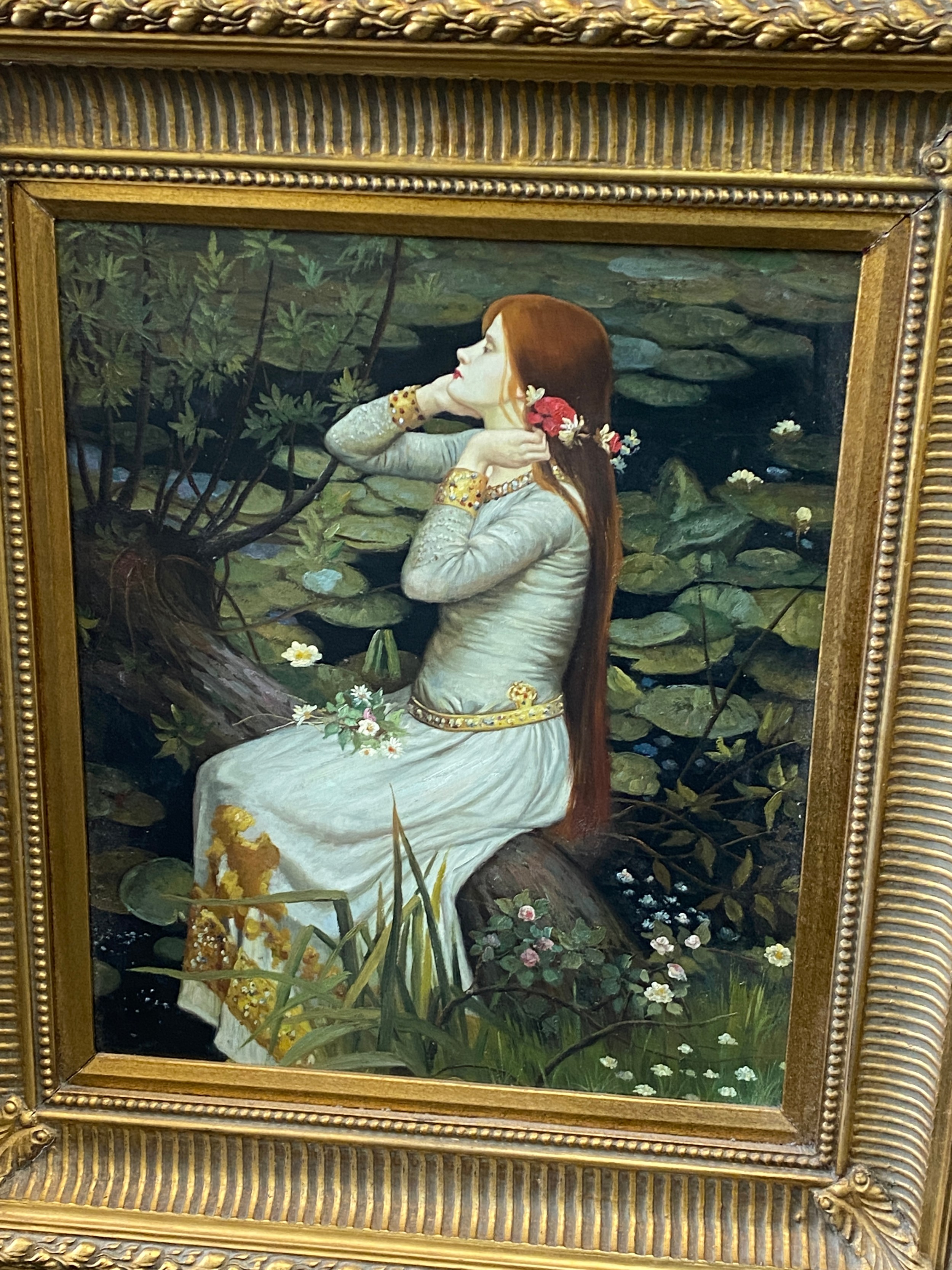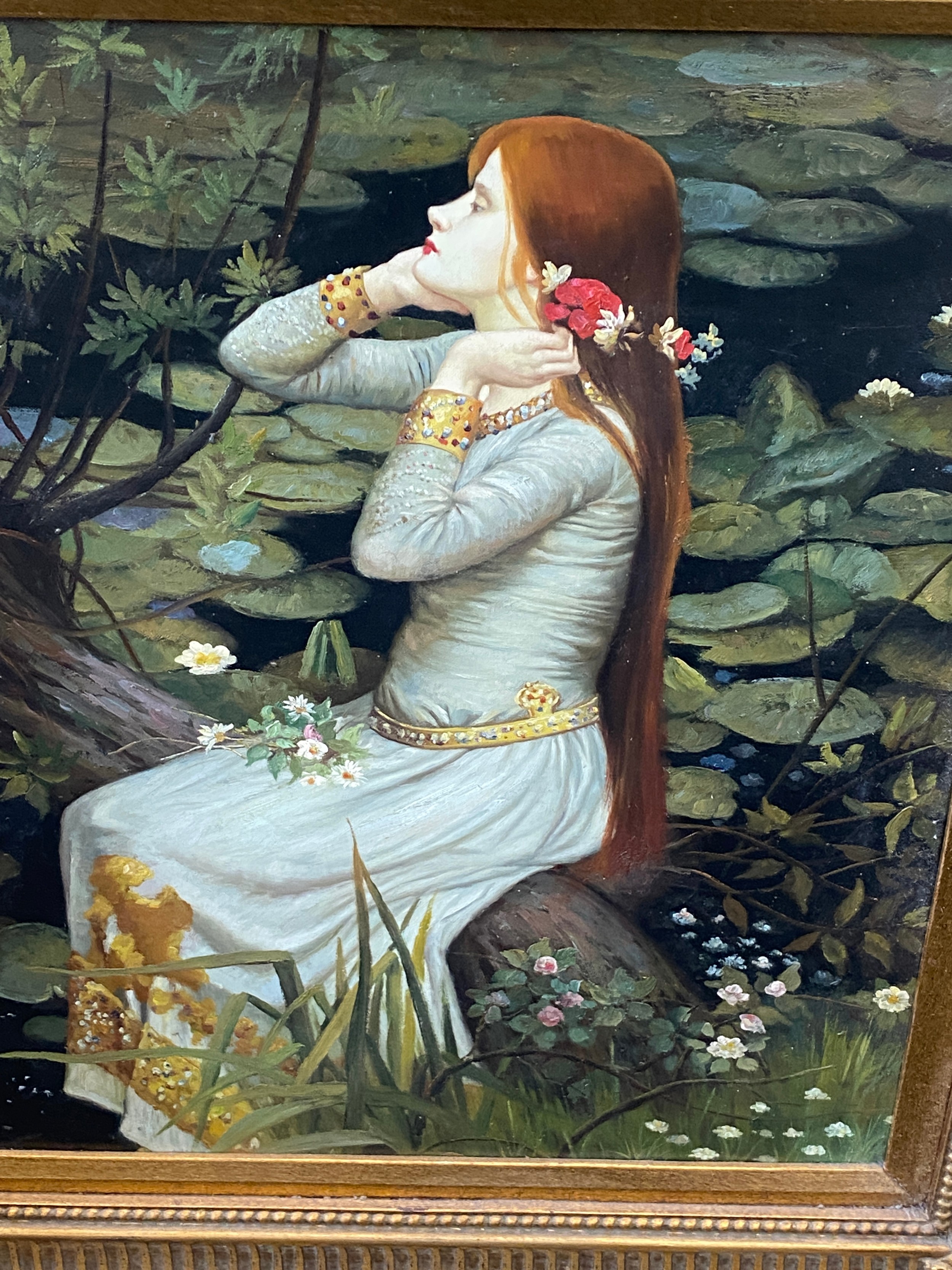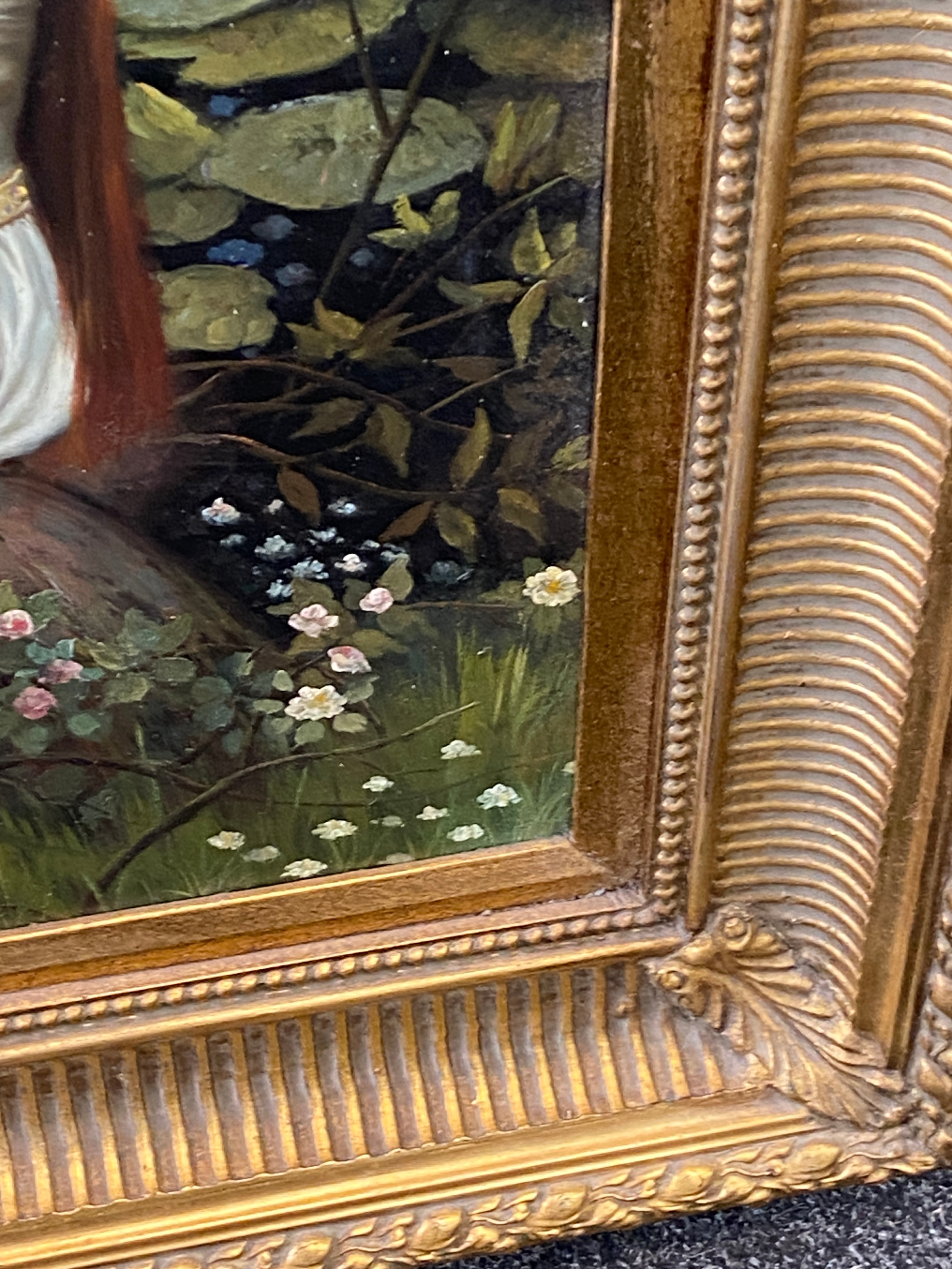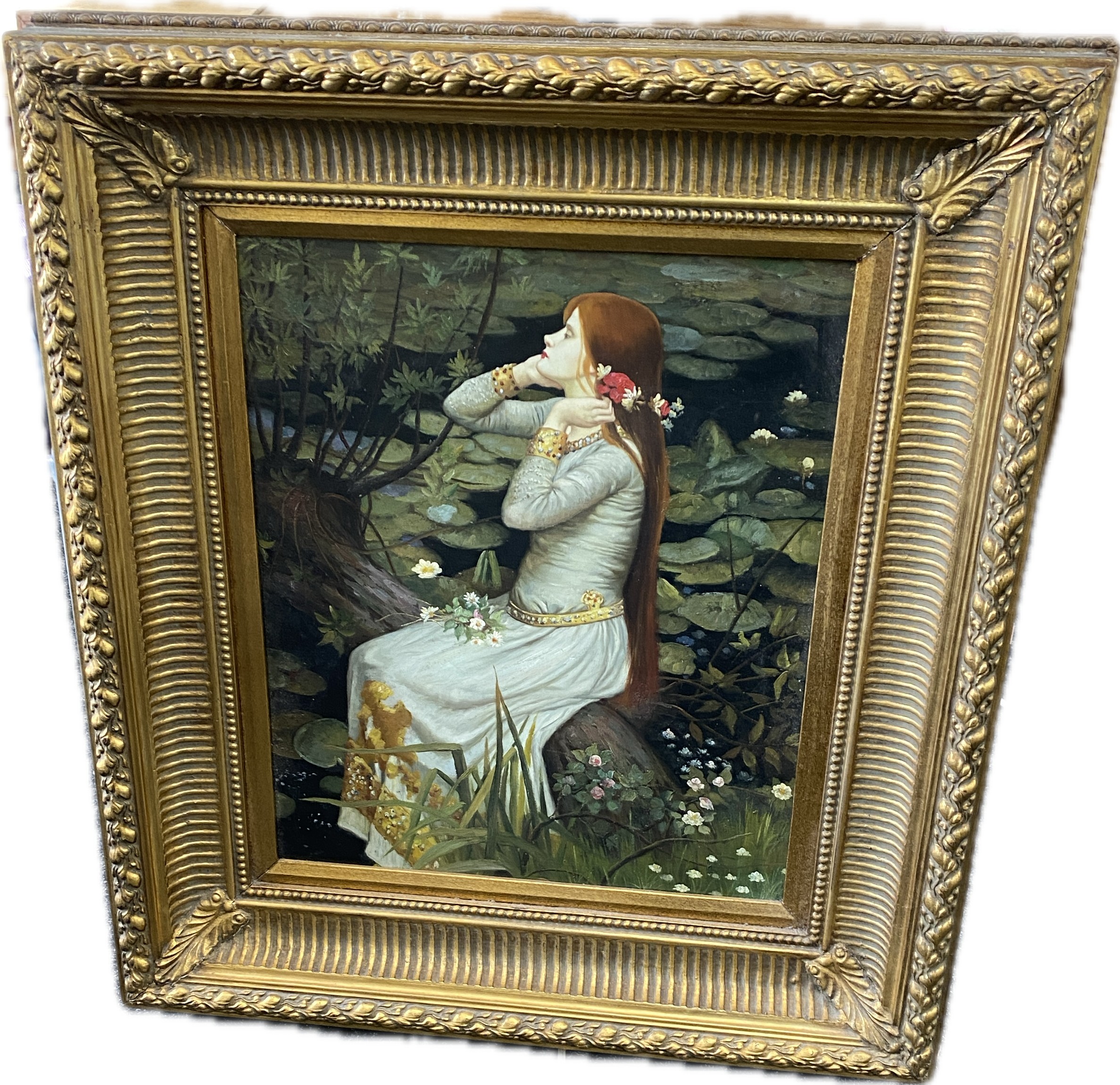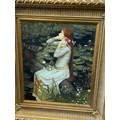 Vintage framed oil on canvas unsigned, Orphelia possibly by John William measures approximately 37 inches by 32 inches
