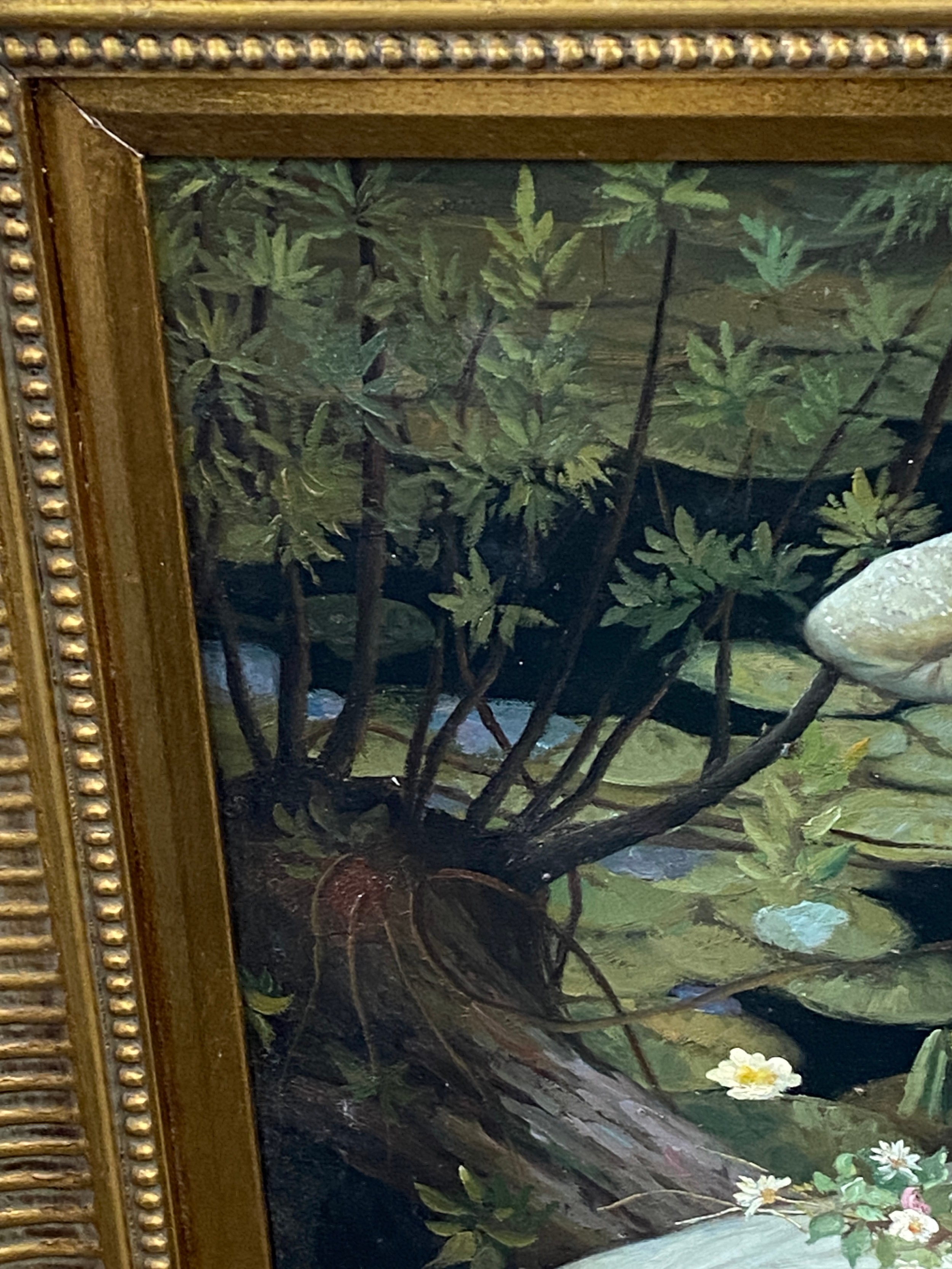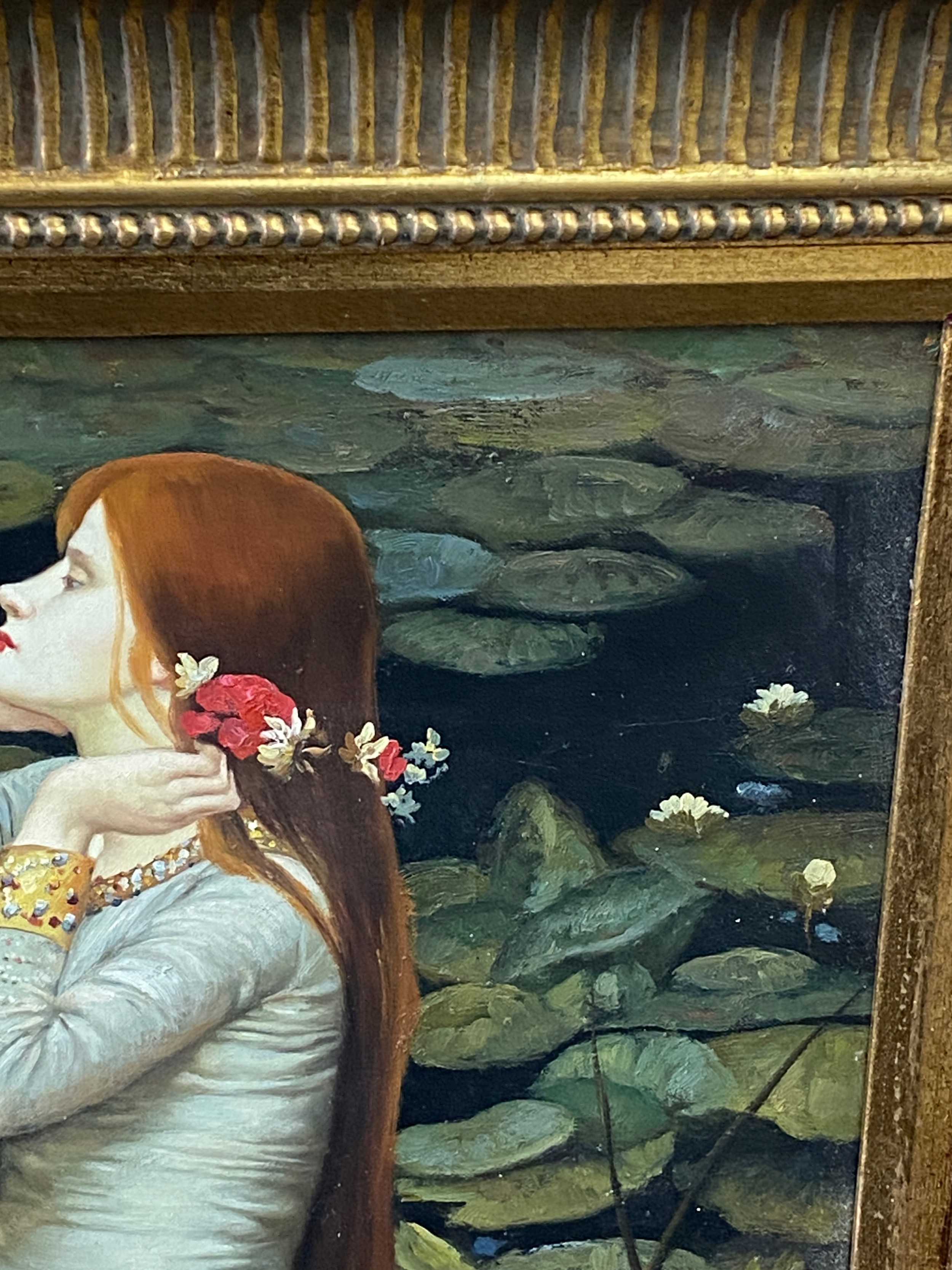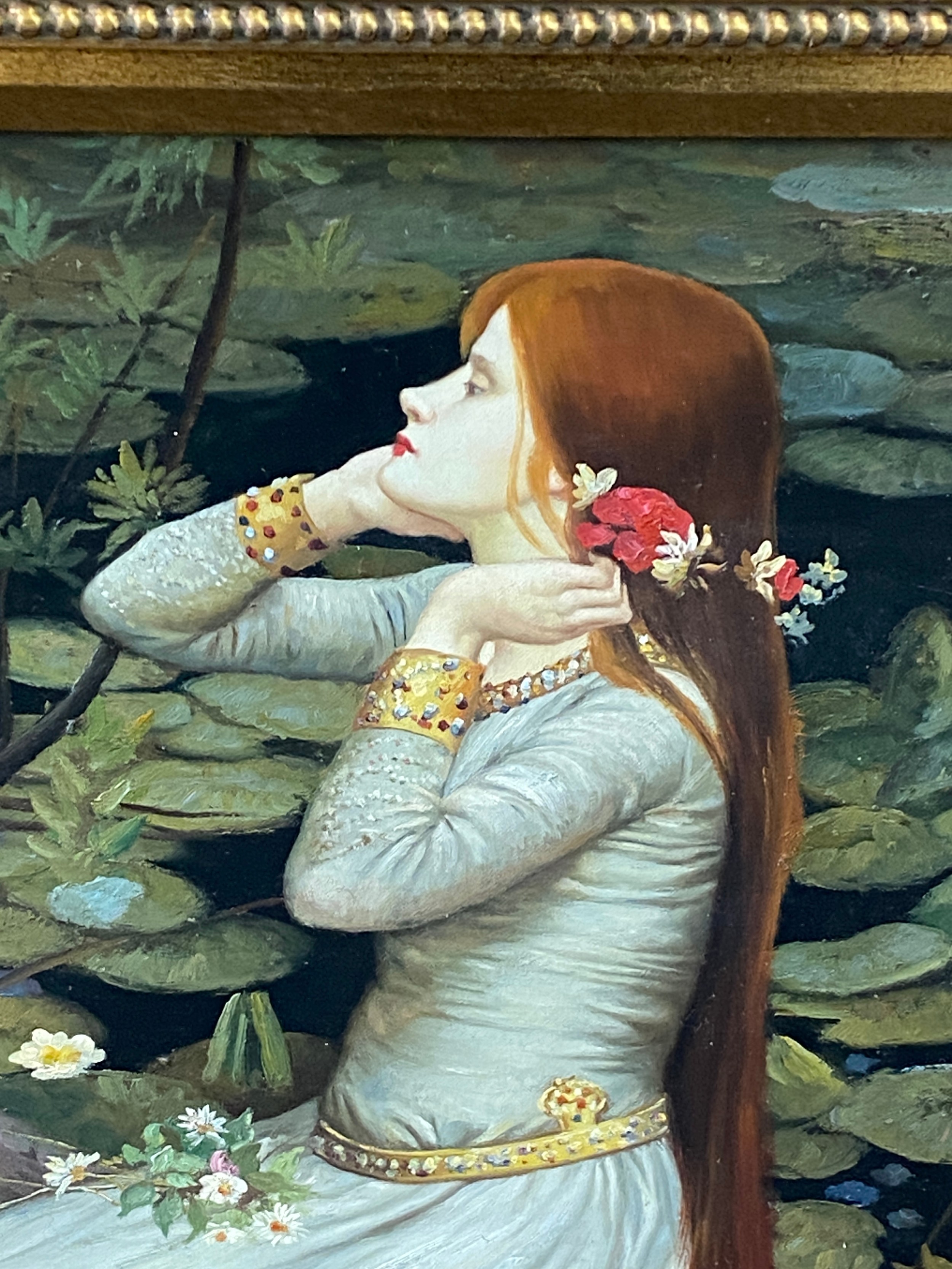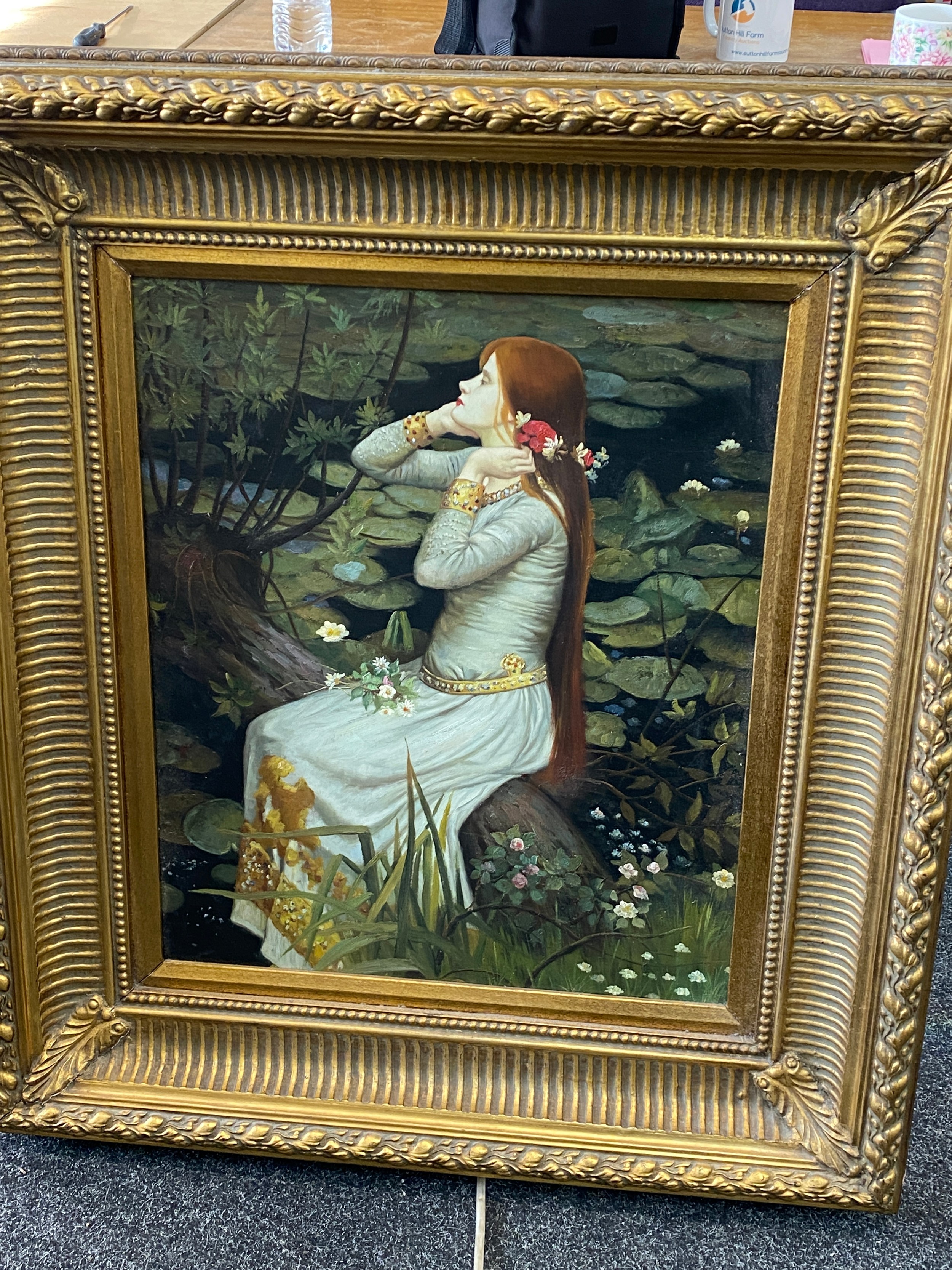 Vintage framed oil on canvas unsigned, Orphelia possibly by John William measures approximately 37 inches by 32 inches